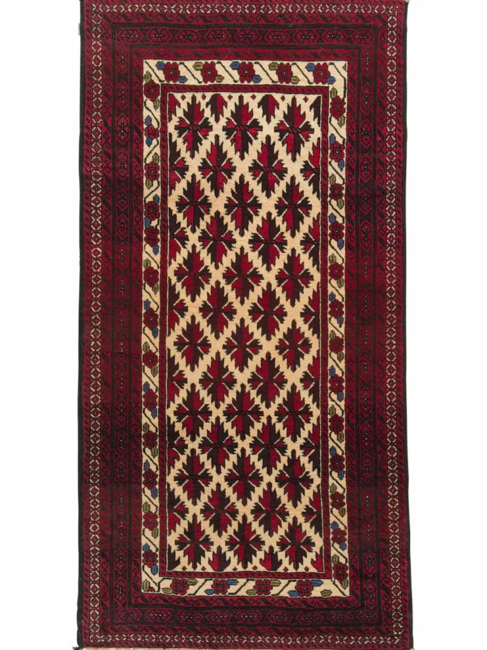 -Teppich hat seinen Namen vom Stamme der Baluchen, wird aber auch von anderen Stämmen geknüpft. Die einzelnen Stämme bleiben dabei ihren traditionellen Mustern und ihrer individuellen Farbgebung treu. Daher ist einBelutsch
