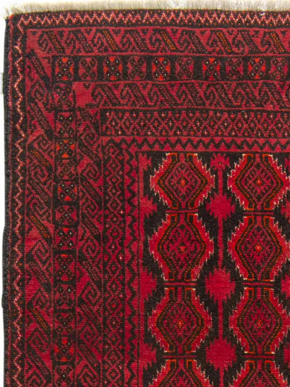 -Teppich hat seinen Namen vom Stamme der Baluchen, wird aber auch von anderen Stämmen geknüpft. Die einzelnen Stämme bleiben dabei ihren traditionellen Mustern und ihrer individuellen Farbgebung treu. Daher ist einBelutsch