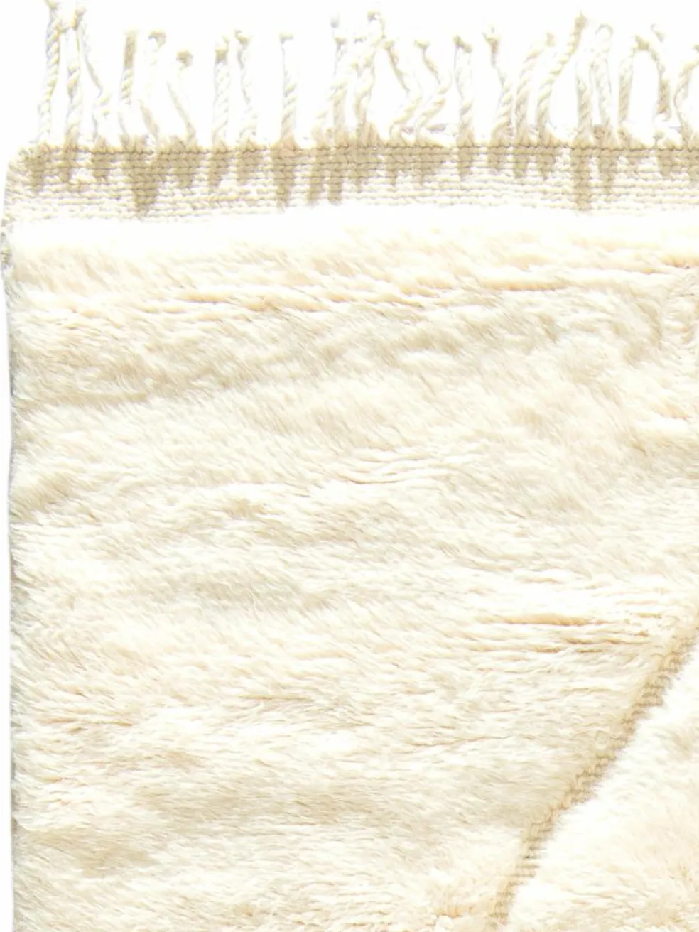 . Die Teppiche sind fast immer weißgrundig und zeichnen sich durch schwarze Zickzack-, Gitter- oder Rauten-Muster sowie einem wohnlich-zotteligen Flor aus. Kaum eine andere Teppichprovenienz passt mit ihren ursprünglichen nomadischen Designs besser in einen minimalistischen Wohnstil. Wie viele andere Nomadenteppiche auch, wurden dieBeni Ourain