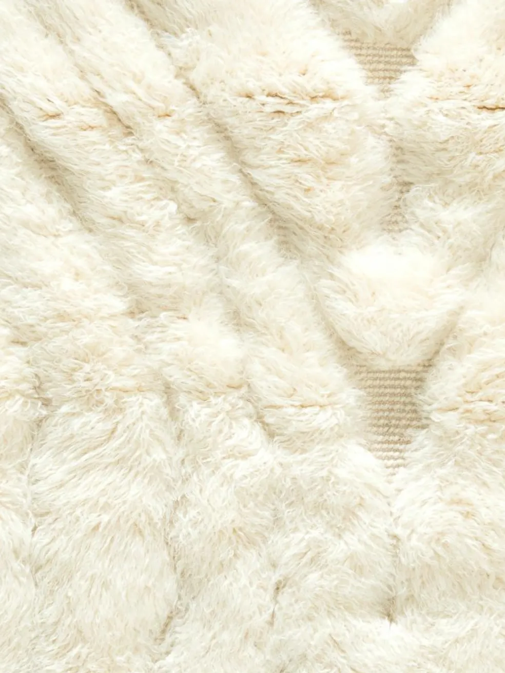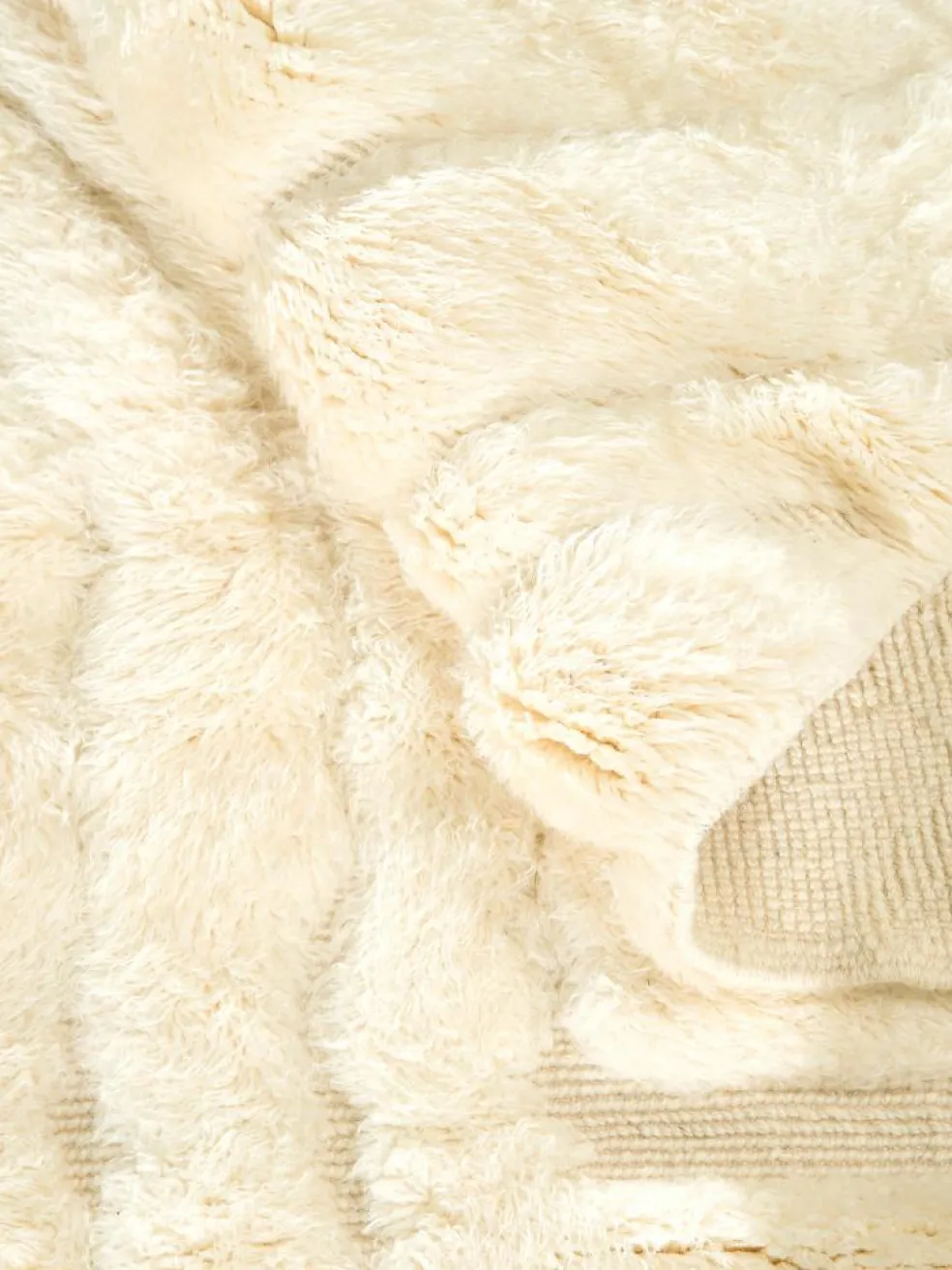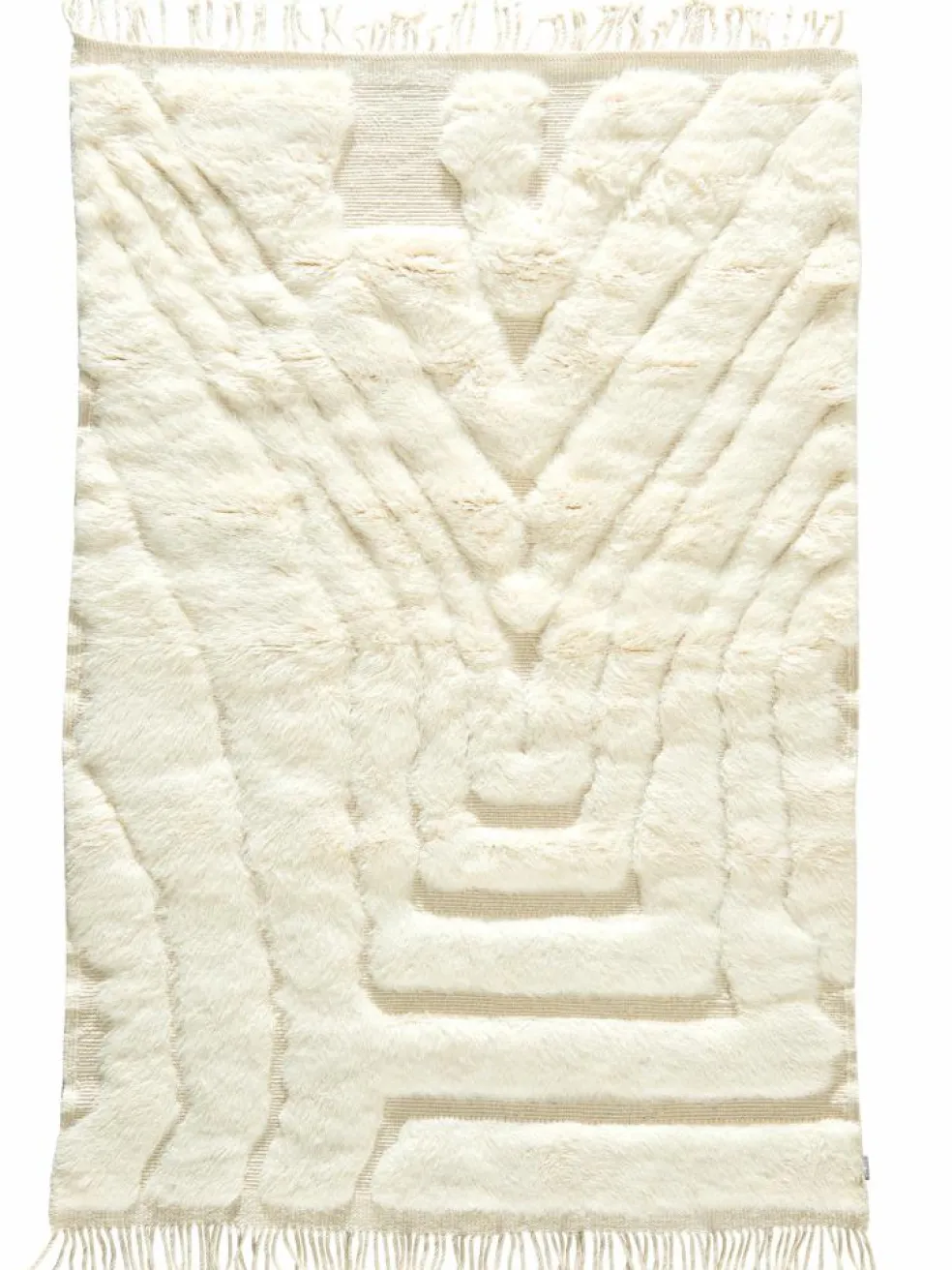 . Die Teppiche sind fast immer weißgrundig und zeichnen sich durch schwarze Zickzack-, Gitter- oder Rauten-Muster sowie einem wohnlich-zotteligen Flor aus. Kaum eine andere Teppichprovenienz passt mit ihren ursprünglichen nomadischen Designs besser in einen minimalistischen Wohnstil. Wie viele andere Nomadenteppiche auch, wurden dieBeni Ourain