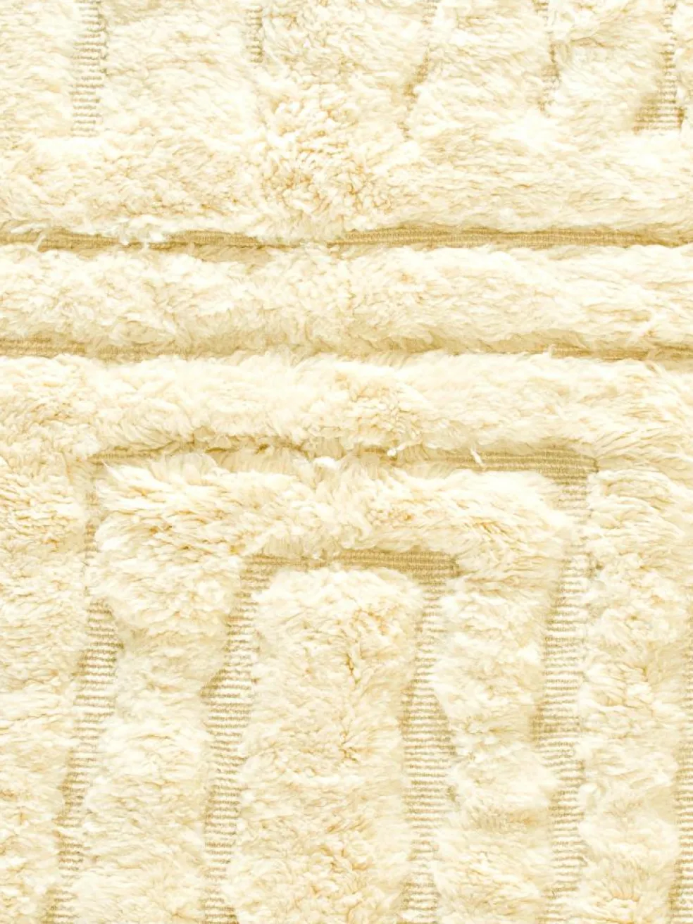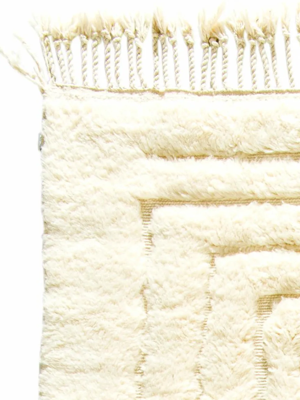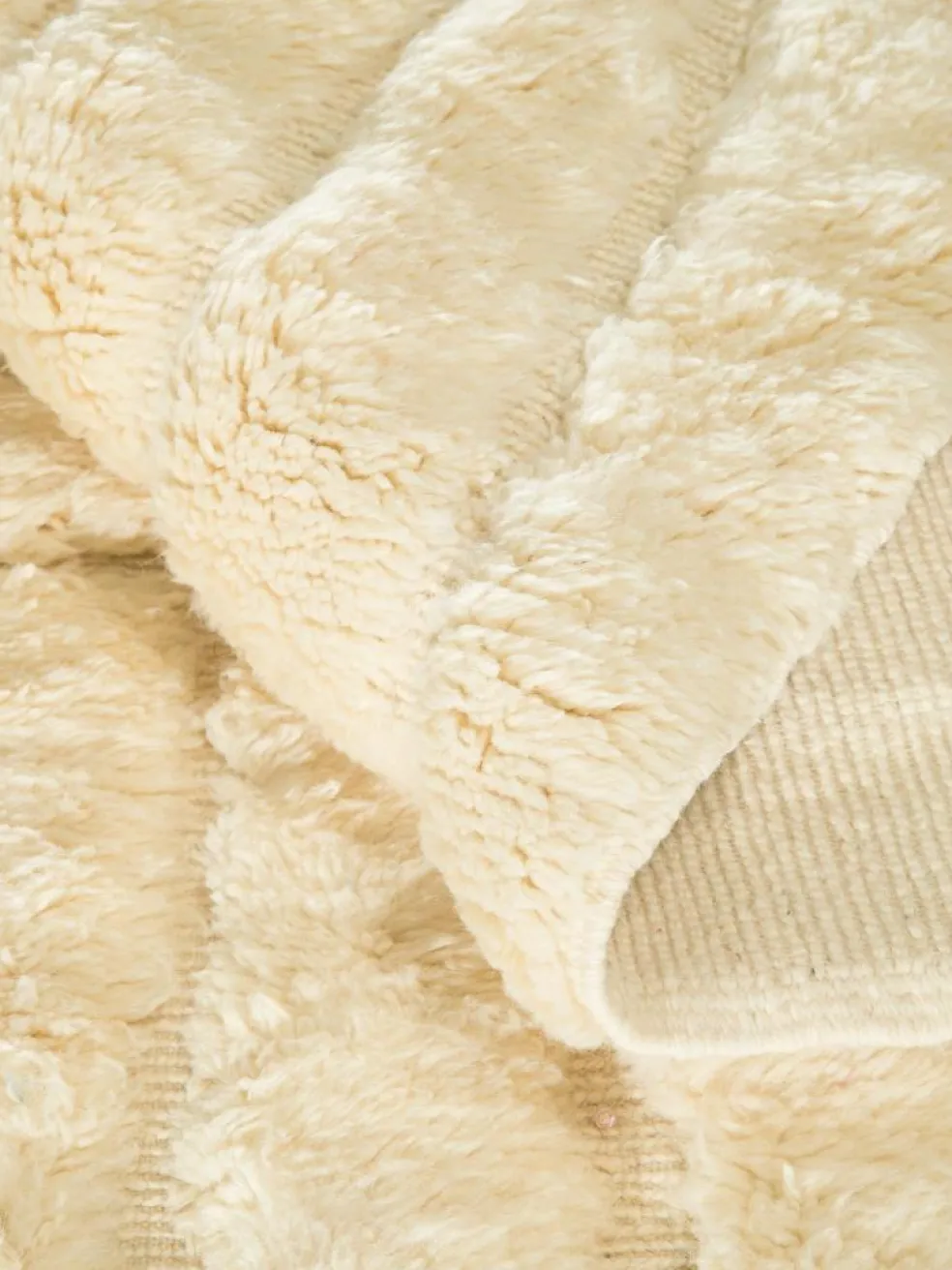 . Die Teppiche sind fast immer weißgrundig und zeichnen sich durch schwarze Zickzack-, Gitter- oder Rauten-Muster sowie einem wohnlich-zotteligen Flor aus. Kaum eine andere Teppichprovenienz passt mit ihren ursprünglichen nomadischen Designs besser in einen minimalistischen Wohnstil. Wie viele andere Nomadenteppiche auch, wurden dieBeni Ourain