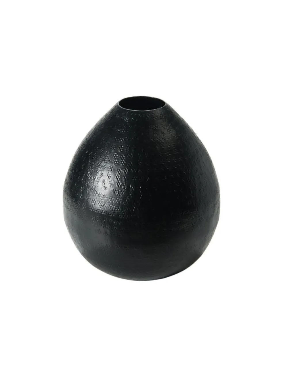 Formschöne Vase aus Aluminium mit fein strukturierter Oberfläche.