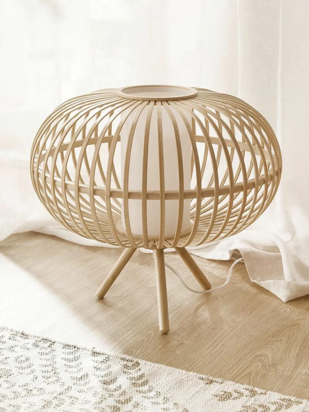 Aus Bambus im Japandi-Look. Lampenschirm handgefertigt. Exkl. Leuchtmittel E27, 40W.