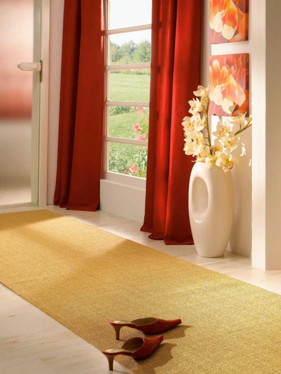 Mit Bouclé bezeichnet man Textilien, die über eine ripsartige Oberfläche verfügen. Unser BOUCLÉ-STRONG ist ein gewebter Läufer mit diesem beliebten Relief-Effekt. Als Material für das Obergewebe wurde eine reine Sisalfaser verwendet, die ausgesprochen zugfest ist, sich durch eine hohe Steifigkeit auszeichnet – und damit prädestiniert ist für die Verwendung für einen Läufer, der hohen Belastungen Stand halten muss. Der BOUCLÉ-STRONG ist langlebig und außerordentlich strapazierfähig. Er ist in angenehm natürlichen Farben und verschiedenen Breiten erhältlich. Rückseitig rutschhemmend ausgerüstet. Die Schnittkanten werden grundsätzlich mit farblich passendem Garn gekettelt. Zu diesem Teppich empfehlen wir zur Sicherheit auf Schritt und Tritt für Laminat und Parkett die KIBEK ALLSTOP-SUPER Teppich-Spezialunterlage. Durch Lagerung und Transport kann es beim ersten Legen des Teppichs zu Wellenbildung kommen. Sobald der Teppich belaufen wird, glättet sich die Oberfläche. Oberfläche aus 100% Sisal.