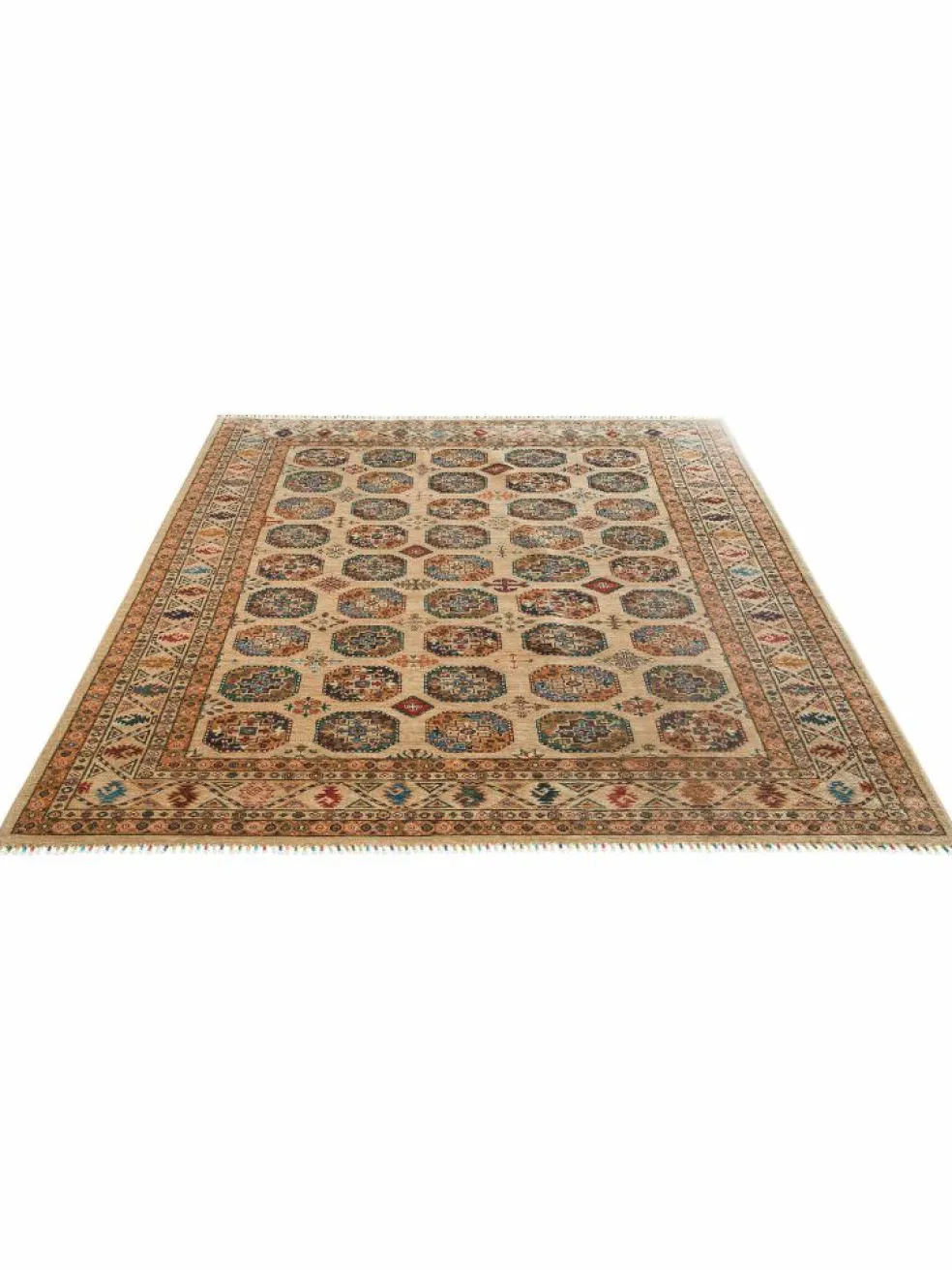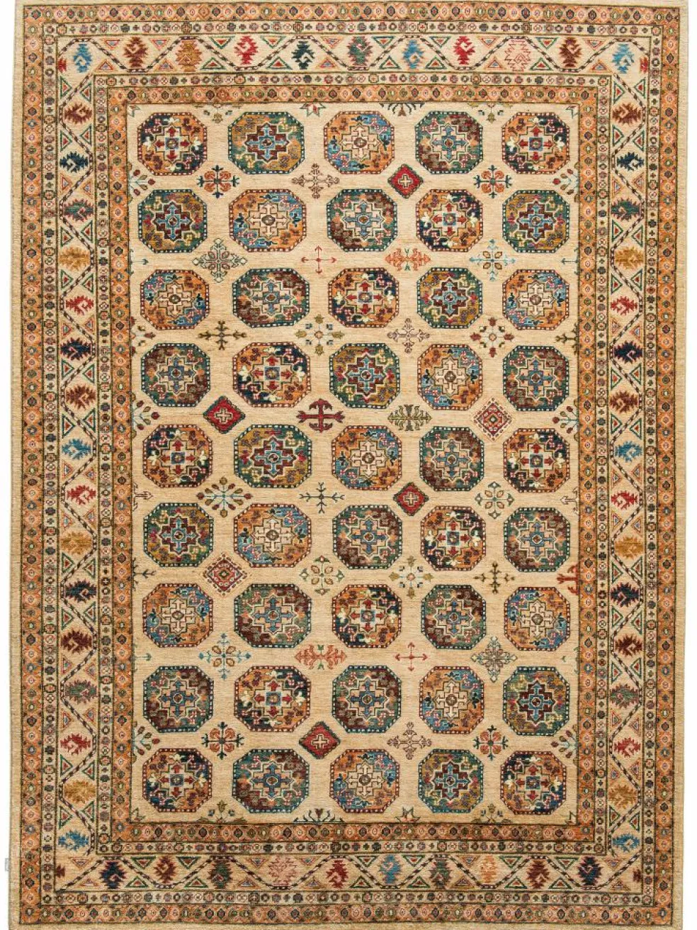 zeigt im Muster das klassische turkmenische Bucharadesign. Als Vorbild dienen dabei die jeweilige Stammeszeichen (Gül