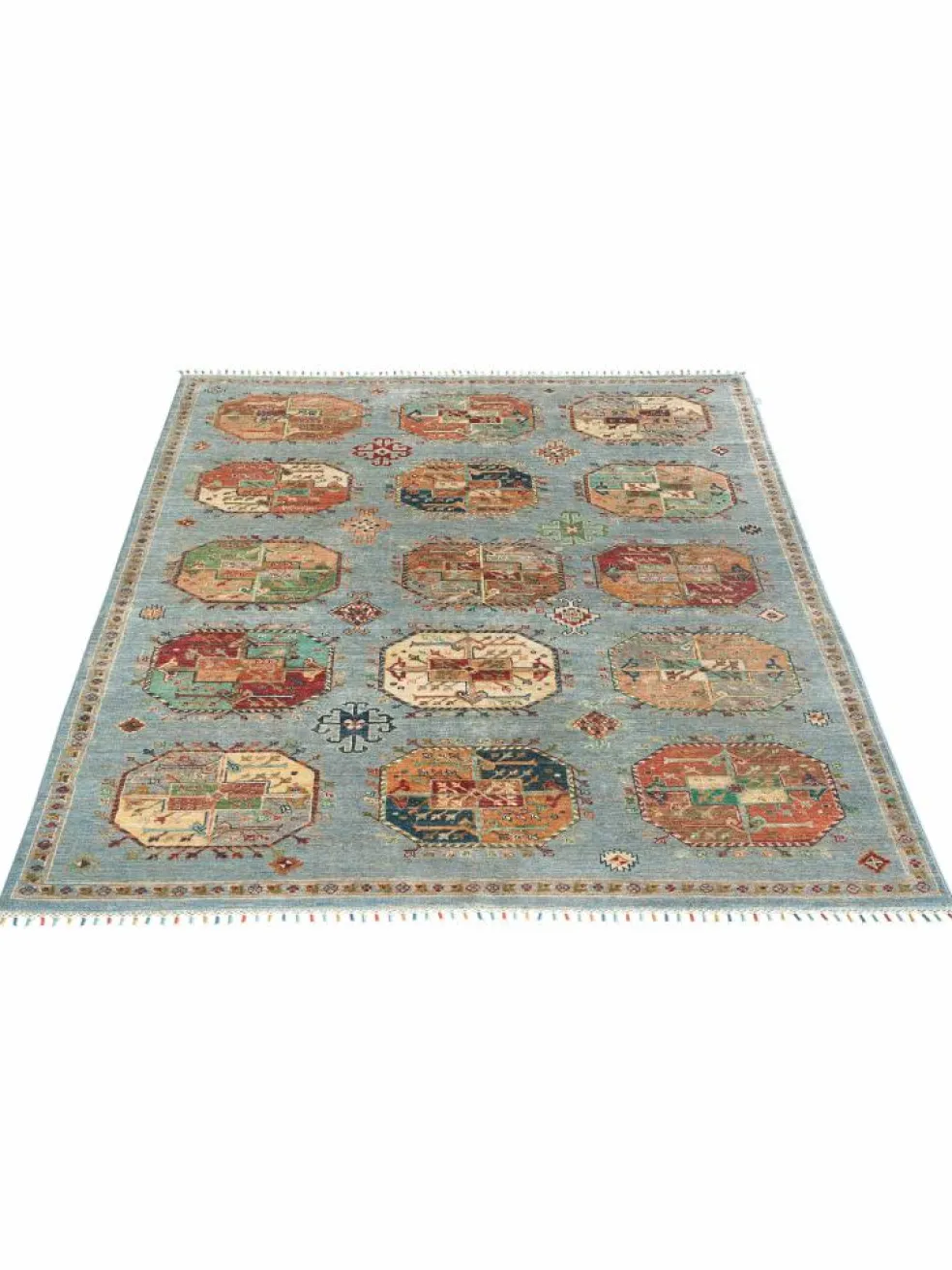 zeigt im Muster das klassische turkmenische Bucharadesign. Als Vorbild dienen dabei die jeweilige Stammeszeichen (Gül