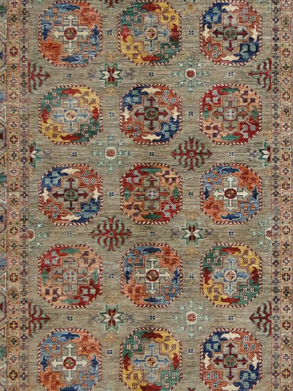 zeigt im Muster das klassische turkmenische Bucharadesign. Als Vorbild dienen dabei die jeweilige Stammeszeichen (Gül