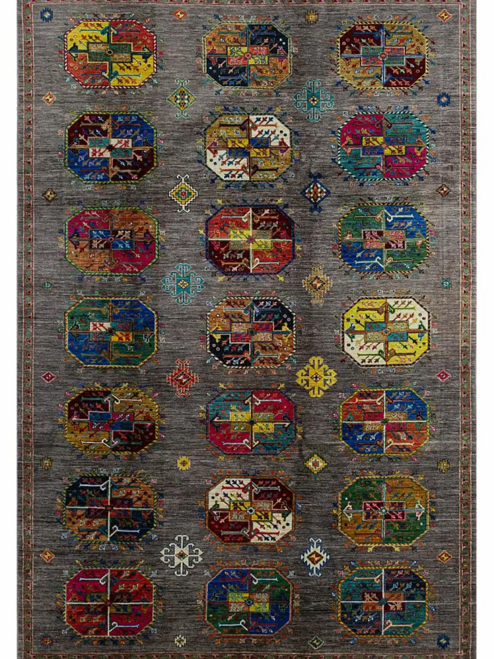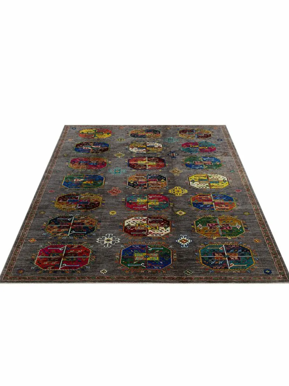 zeigt im Muster das klassische turkmenische Bucharadesign. Als Vorbild dienen dabei die jeweilige Stammeszeichen (Gül