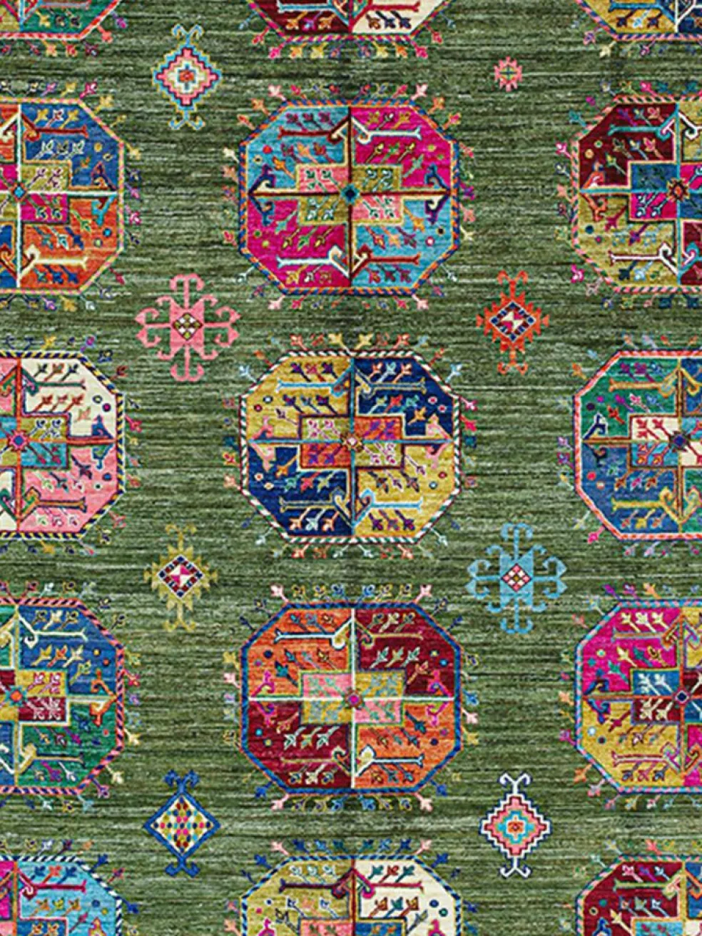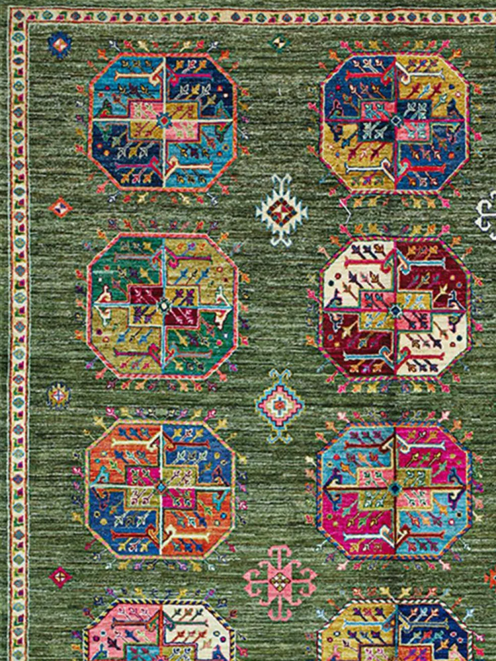 zeigt im Muster das klassische turkmenische Bucharadesign. Als Vorbild dienen dabei die jeweilige Stammeszeichen (Gül