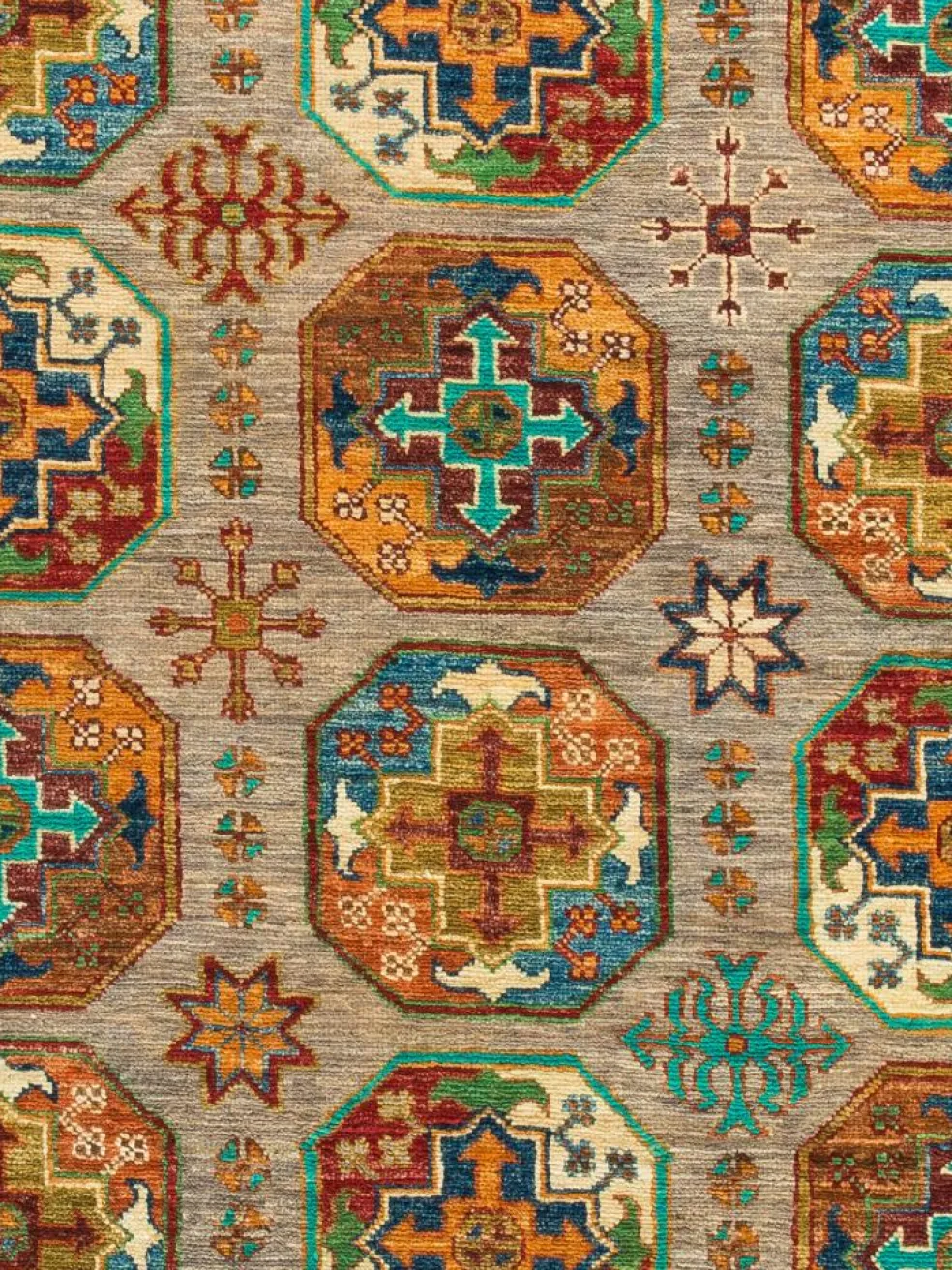 zeigt im Muster das klassische turkmenische Bucharadesign. Als Vorbild dienen dabei die jeweilige Stammeszeichen (Gül