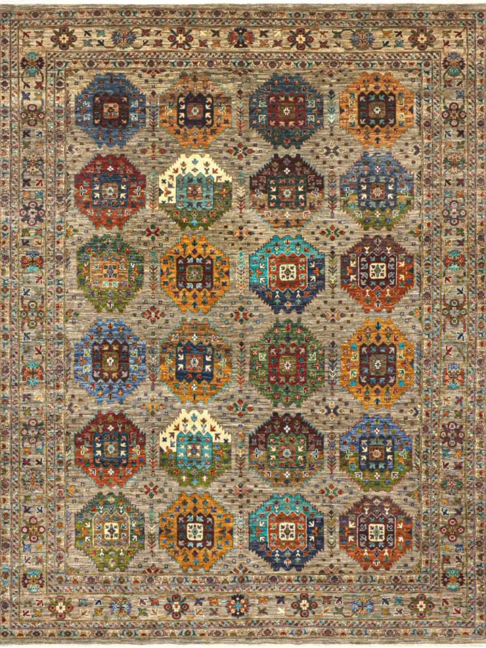 zeigt im Muster das klassische turkmenische Bucharadesign. Als Vorbild dienen dabei die jeweilige Stammeszeichen (Gül