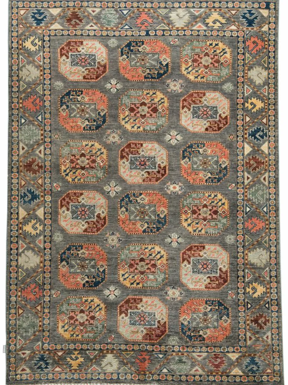 zeigt im Muster das klassische turkmenische Bucharadesign. Als Vorbild dienen dabei die jeweilige Stammeszeichen (Gül