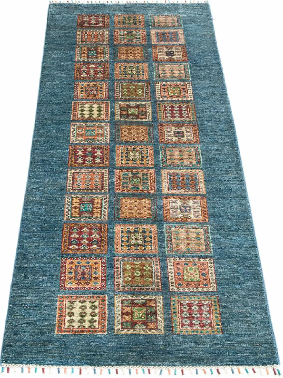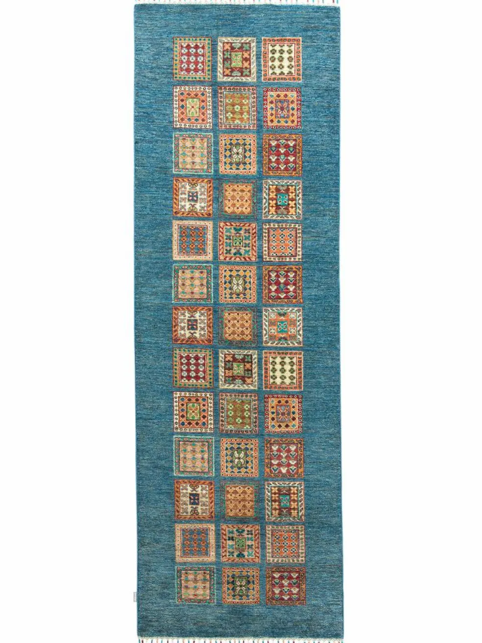 erinnert an einen üppig bewachsenen Garten mit geometrisch gegliederten, einzeln eingefassten Beeten zwischen denen die Bewässerungsgräben verlaufen. Durch den flachen und festen Flor ist der Teppich unempfindlich gegenüber den Belastungen des Alltags.- Das Besondere an diesemOrientteppich