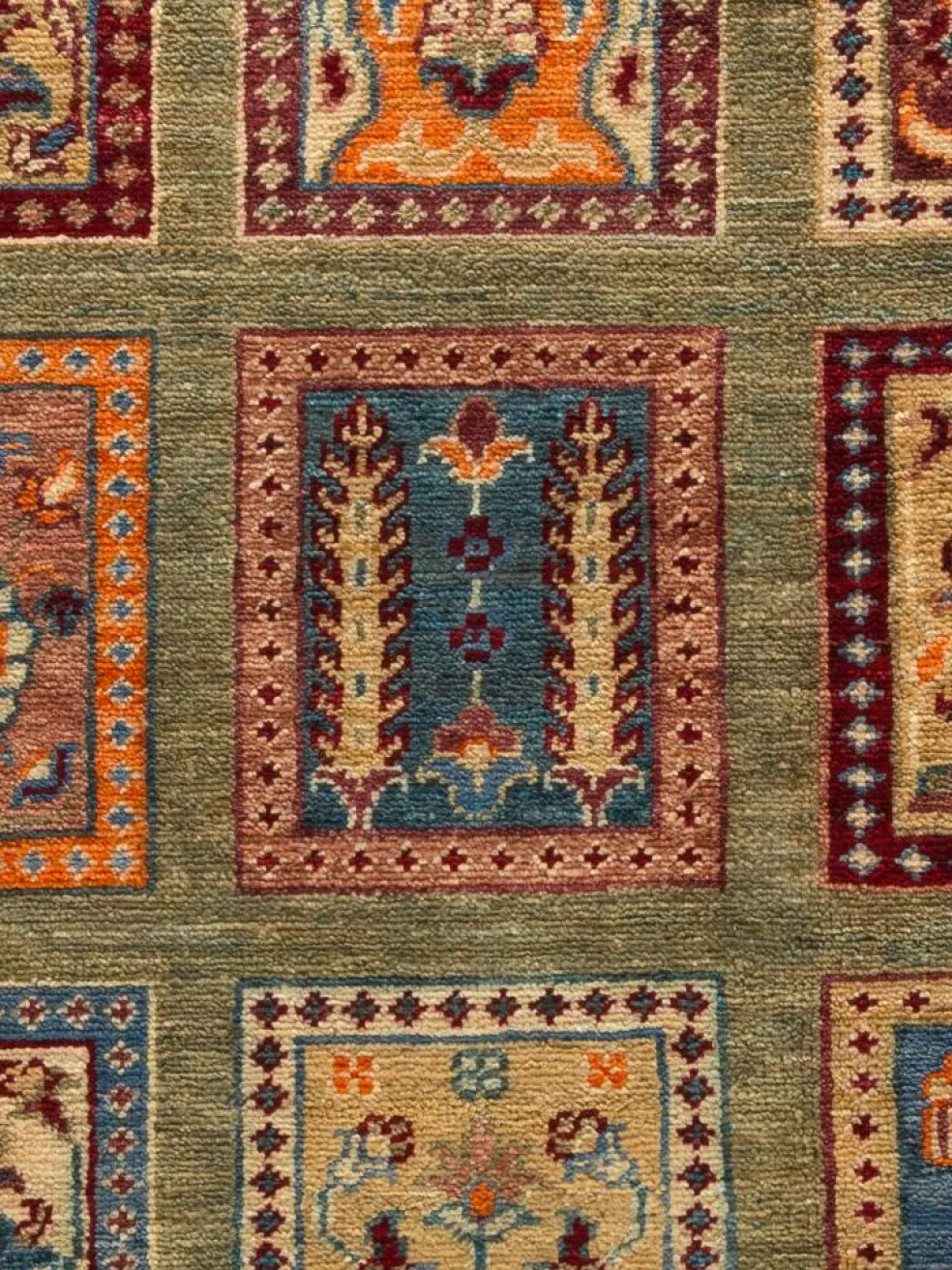 zeigt eine wunderschöne, farbenfrohe Interpretation des traditionellen, persischen Feldermusters. Das persischeFeldermuster