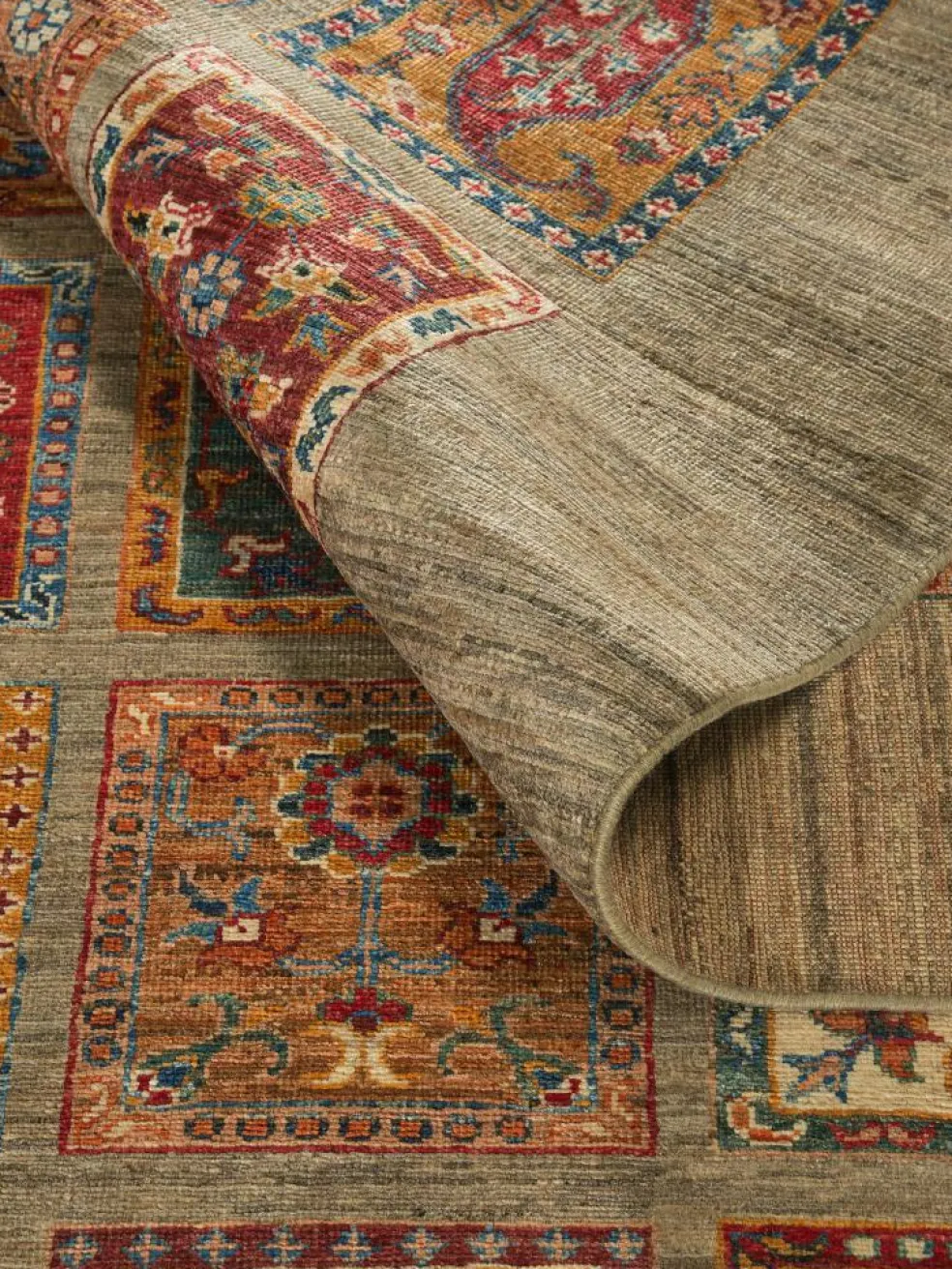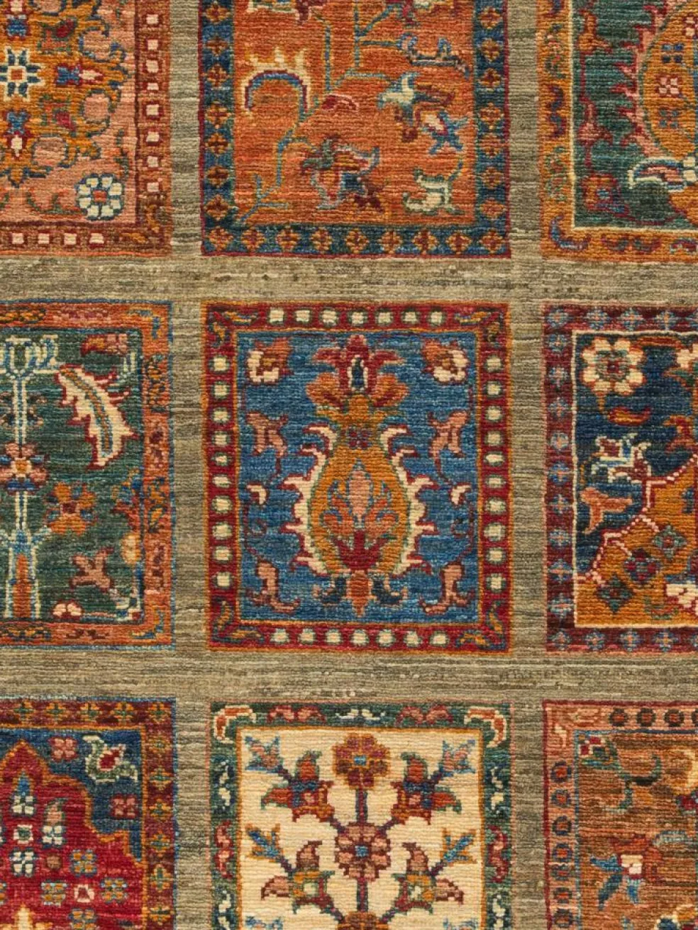 zeigt eine wunderschöne, farbenfrohe Interpretation des traditionellen, persischen Feldermusters. Das persischeFeldermuster