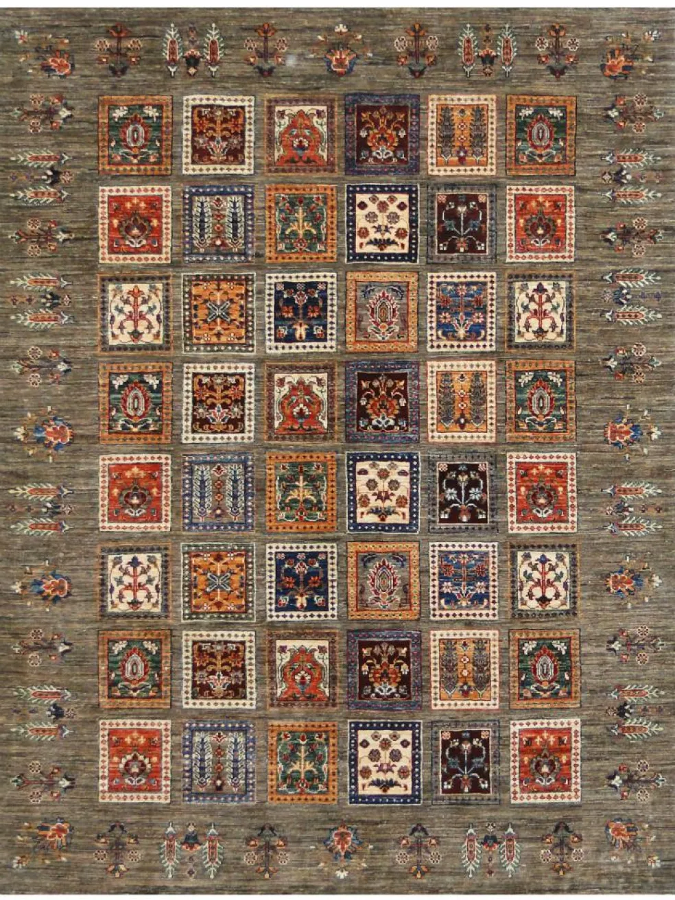 zeigt eine wunderschöne, farbenfrohe Interpretation des traditionellen, persischen Feldermusters. Das persischeFeldermuster