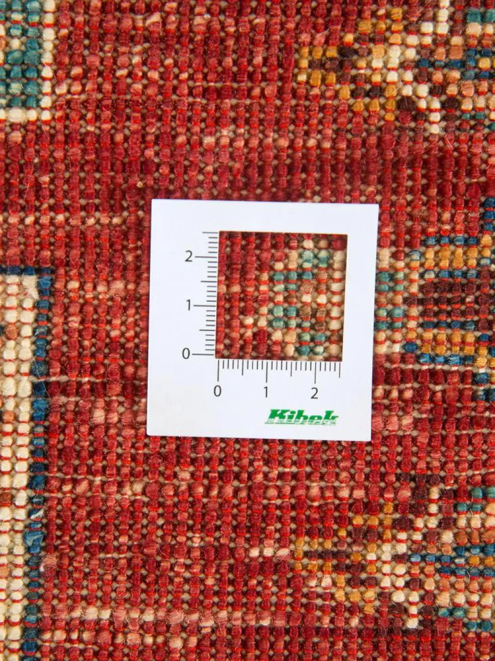 erinnert an einen üppig bewachsenen Garten mit geometrisch gegliederten, einzeln eingefassten Beeten zwischen denen die Bewässerungsgräben verlaufen. Durch den flachen und festen Flor ist der Teppich unempfindlich gegenüber den Belastungen des Alltags.- Das Besondere an diesemOrientteppich