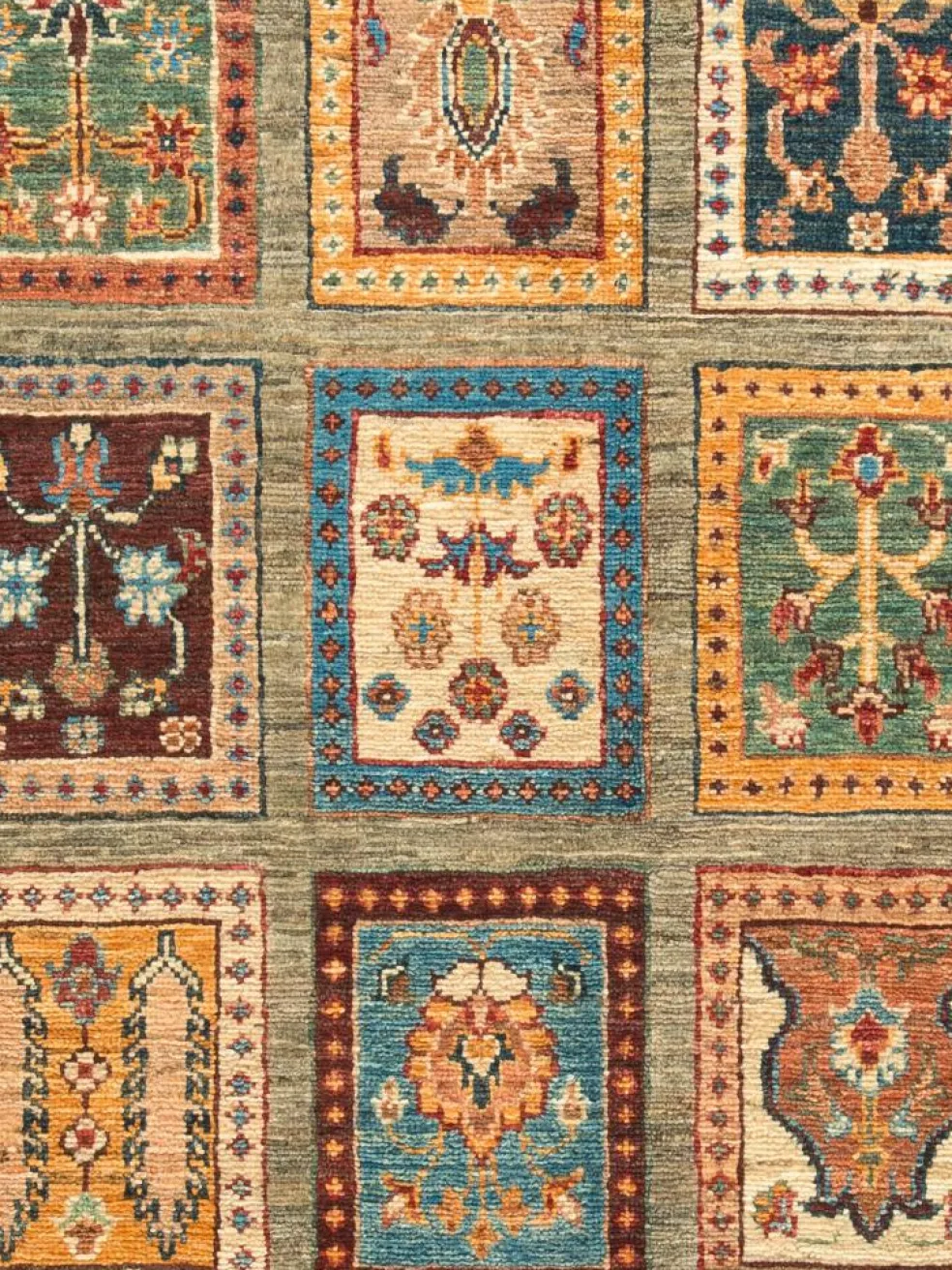 zeigt eine wunderschöne, farbenfrohe Interpretation des traditionellen, persischen Feldermusters. Das persischeFeldermuster