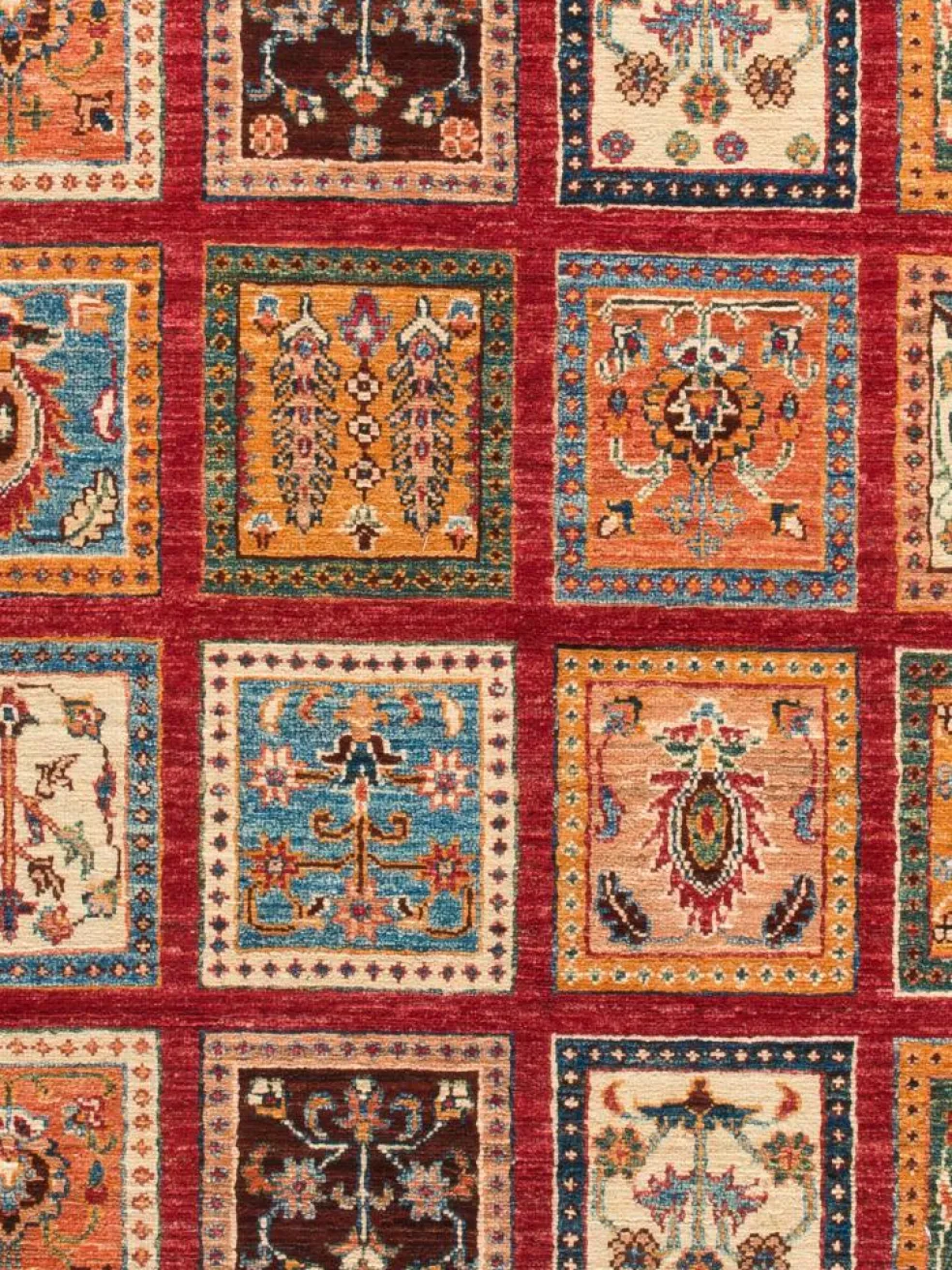 zeigt eine wunderschöne, farbenfrohe Interpretation des traditionellen, persischen Feldermusters. Das persischeFeldermuster