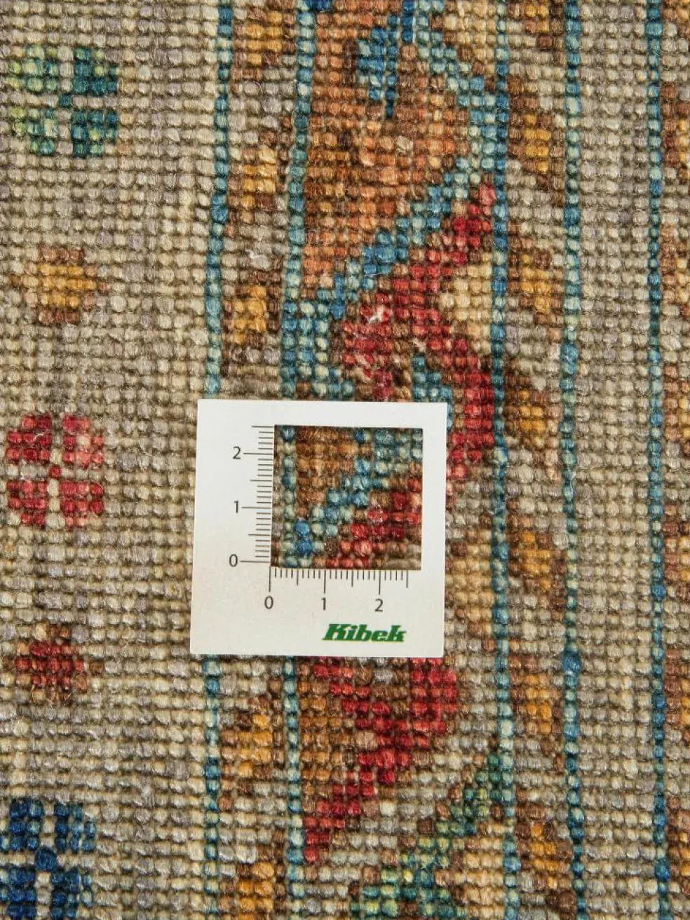 mit bunten Fäden zusammen gebunden. Durch den flachen und festen Flor ist der Teppich unempfindlich gegenüber den Belastungen des Alltags.| Gesamthöhe: | ca. 6 mm |