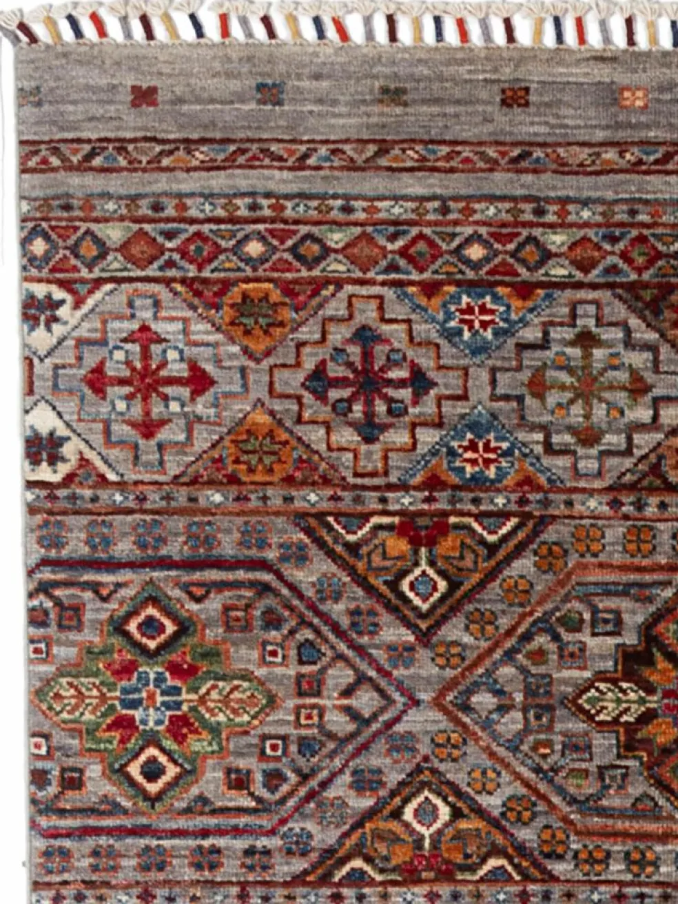 Schal sind farbenfrohe Orientteppiche mit Streifen in vielen verschiedenen Variationen. Einige Teppiche sind längs gestreift und andere quer. Vorbild für diese abwechslungsreichen Streifen ist das persischeMoharamati