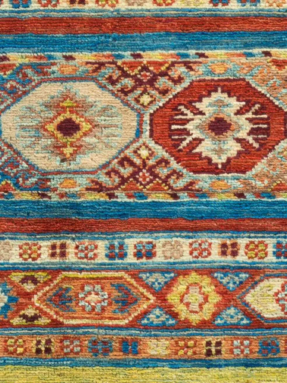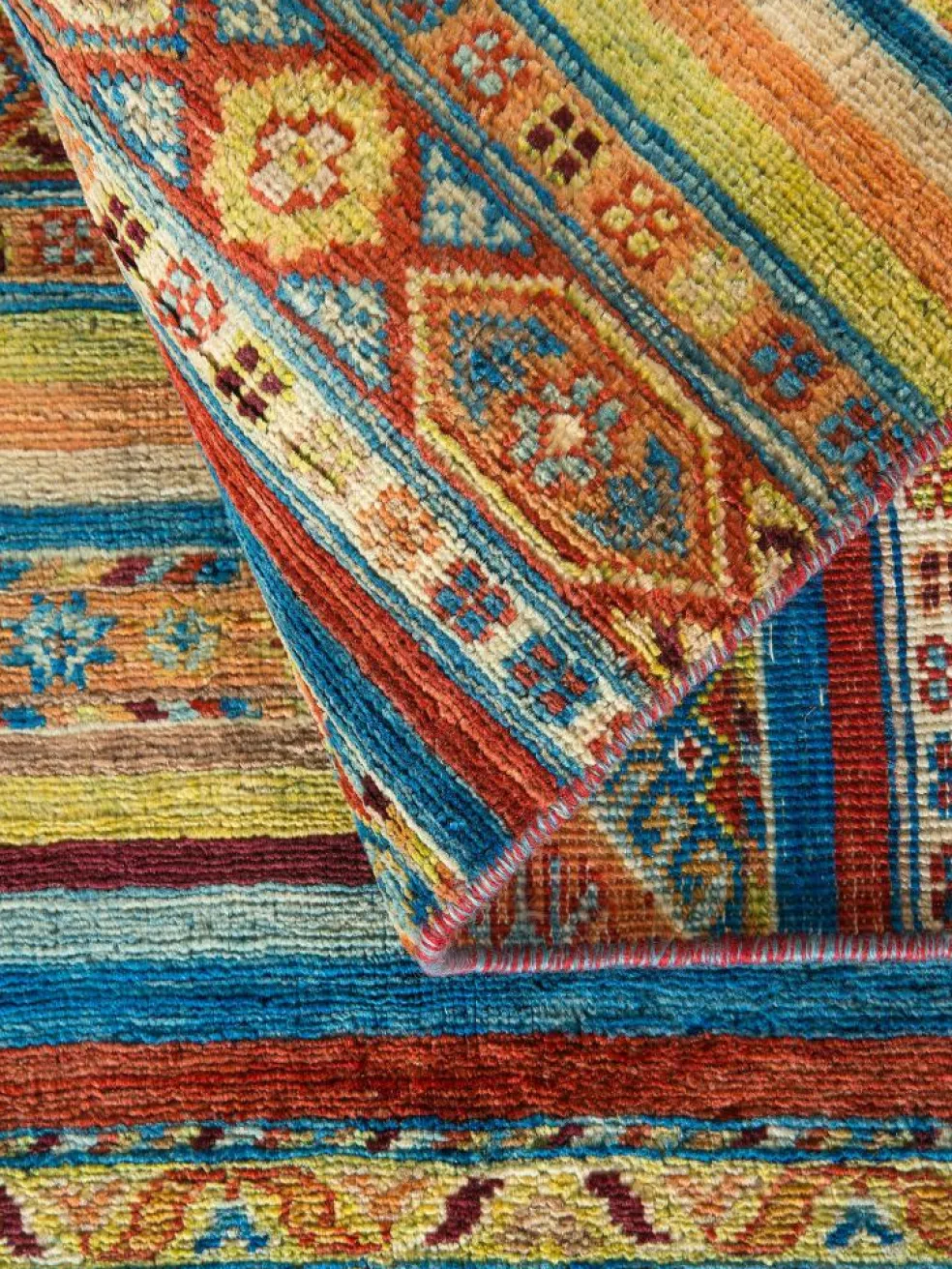 Schal sind farbenfrohe Orientteppiche mit Streifen in vielen verschiedenen Variationen. Einige Teppiche sind längs gestreift und andere quer. Vorbild für diese abwechslungsreichen Streifen ist das persischeMoharamati