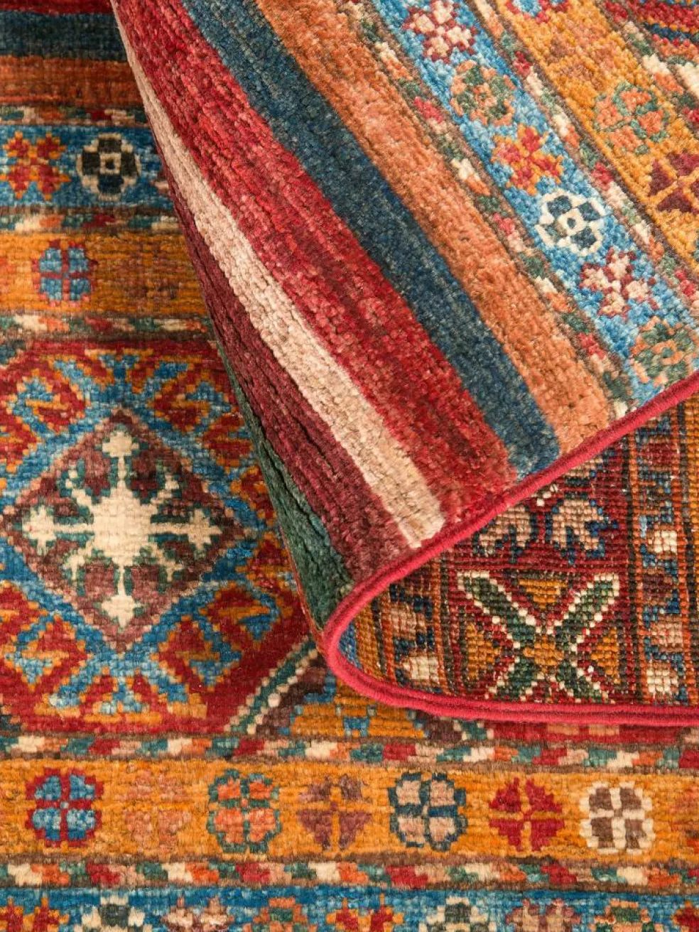 Schal sind farbenfrohe Orientteppiche mit Streifen in vielen verschiedenen Variationen. Einige Teppiche sind längs gestreift und andere quer. Vorbild für diese abwechslungsreichen Streifen ist das persischeMoharamati