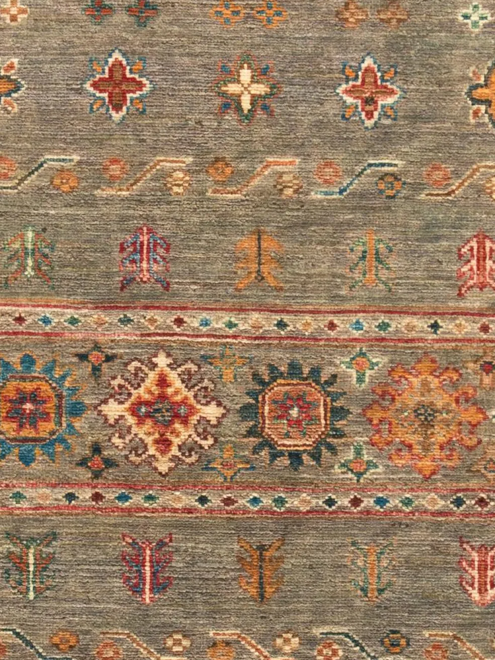-Muster sind bunte Längsstreifen mit vielen verschiedenen Motiven gefüllt. Durch den flachen und festen Flor ist der Teppich unempfindlich gegenüber den Belastungen des Alltags.- Das Besondere an diesemOrientteppich