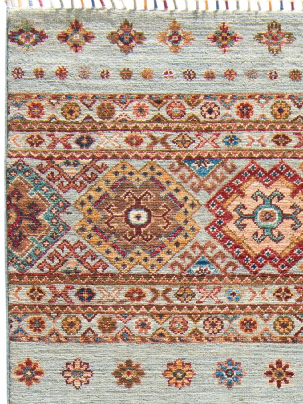 Schal sind farbenfrohe Orientteppiche mit Streifen in vielen verschiedenen Variationen. Einige Teppiche sind längs gestreift und andere quer. Vorbild für diese abwechslungsreichen Streifen ist das persischeMoharamati