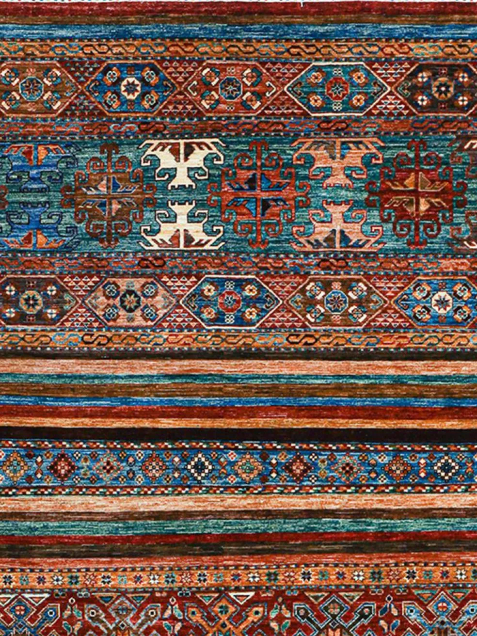 Schal sind farbenfrohe Orientteppiche mit Streifen in vielen verschiedenen Variationen. Einige Teppiche sind längs gestreift und andere quer. Vorbild für diese abwechslungsreichen Streifen ist das persischeMoharamati