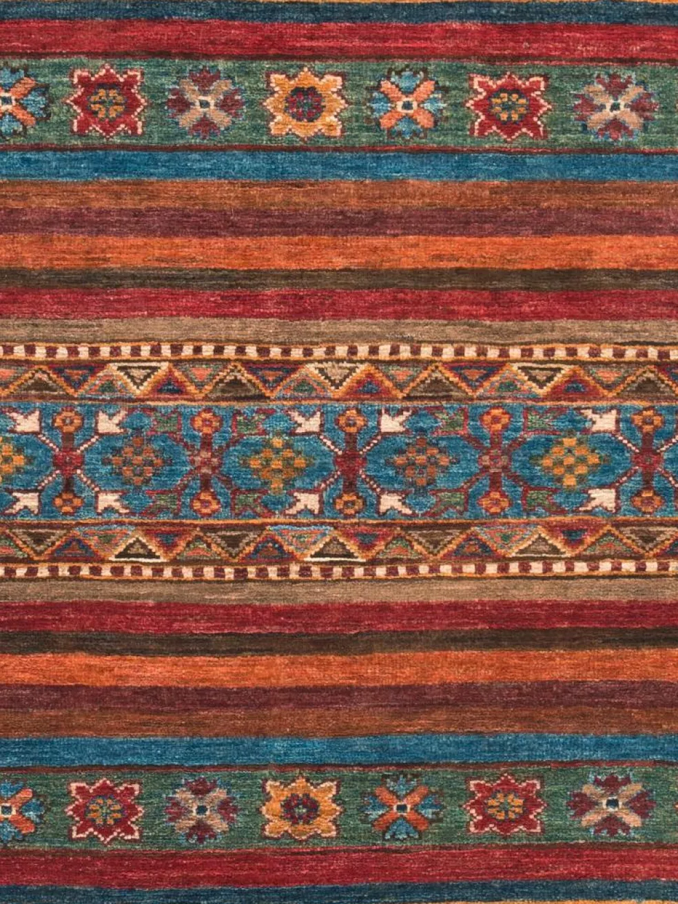 Schal sind farbenfrohe Orientteppiche mit Streifen in vielen verschiedenen Variationen. Einige Teppiche sind längs gestreift und andere quer. Vorbild für diese abwechslungsreichen Streifen ist das persischeMoharamati
