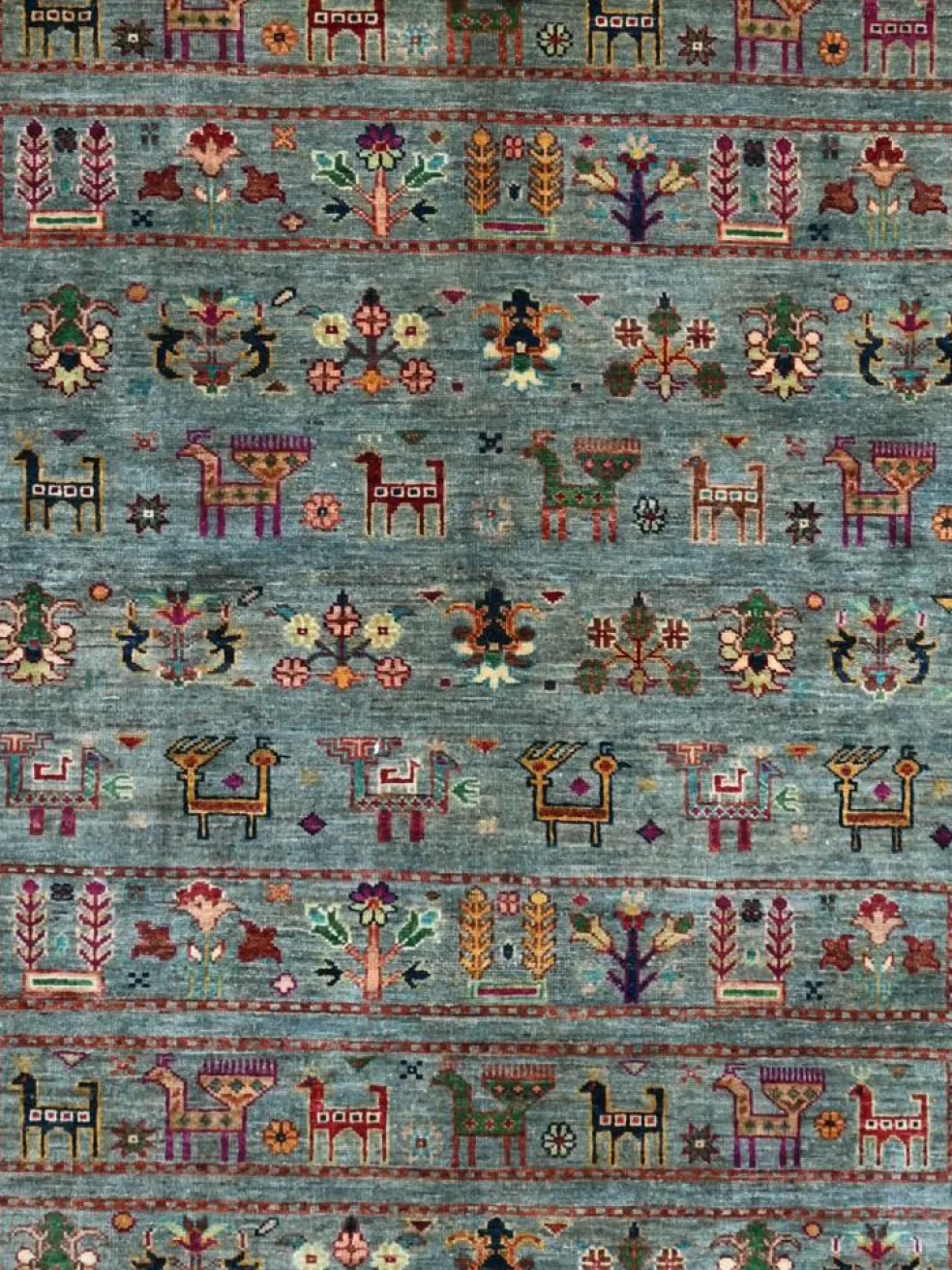 Schal sind farbenfrohe Orientteppiche mit Streifen in vielen verschiedenen Variationen. Einige Teppiche sind längs gestreift und andere quer. Vorbild für diese abwechslungsreichen Streifen ist das persischeMoharamati