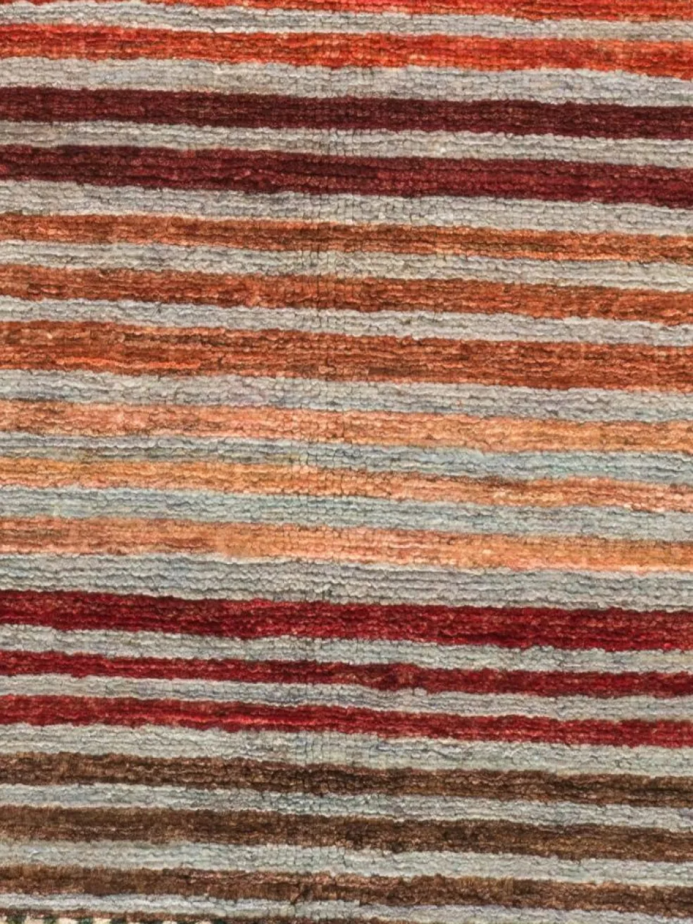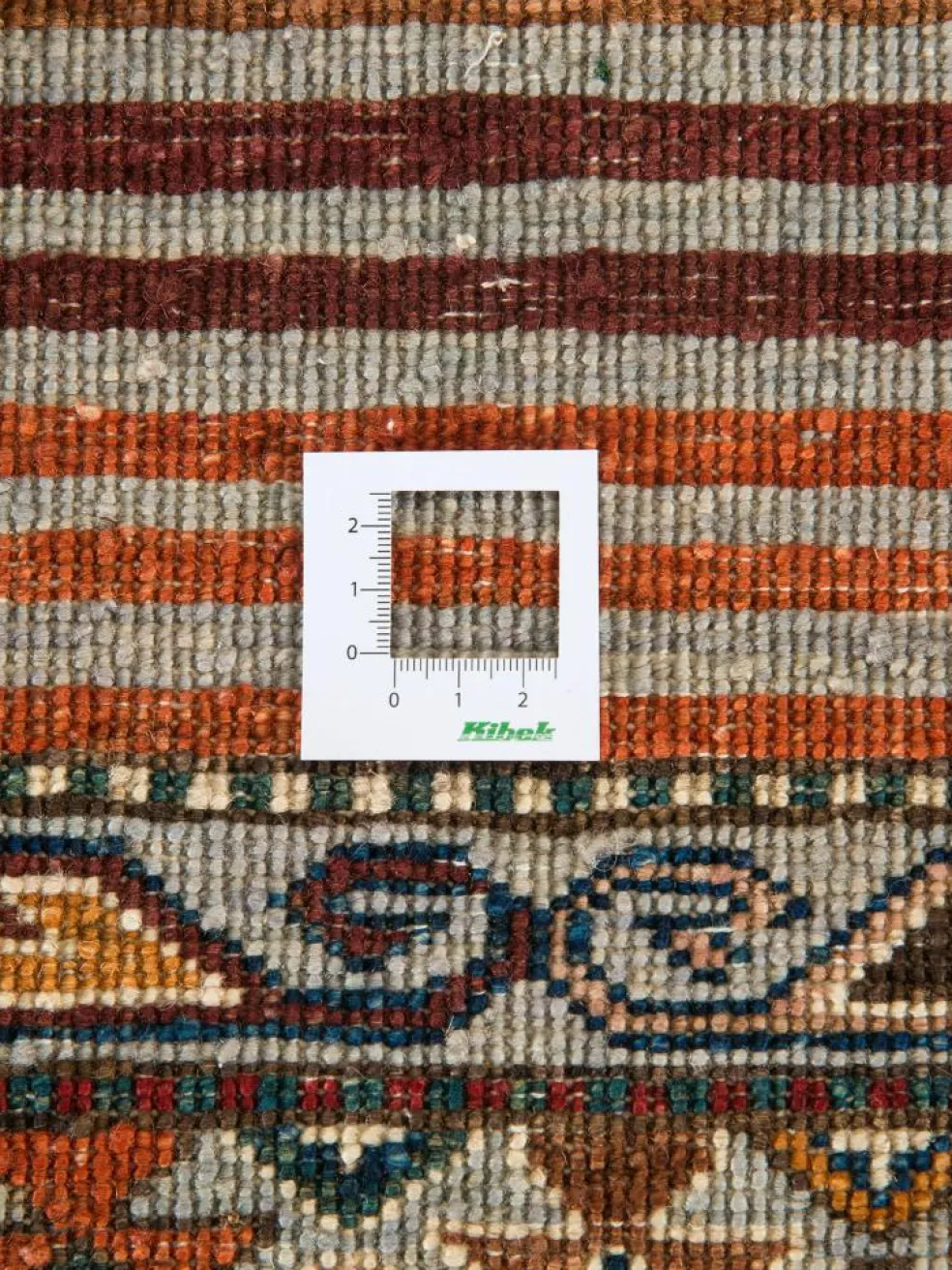 -Muster sind bunte Längsstreifen mit vielen verschiedenen Motiven gefüllt. Durch den flachen und festen Flor ist der Teppich unempfindlich gegenüber den Belastungen des Alltags.- Das Besondere an diesemOrientteppich