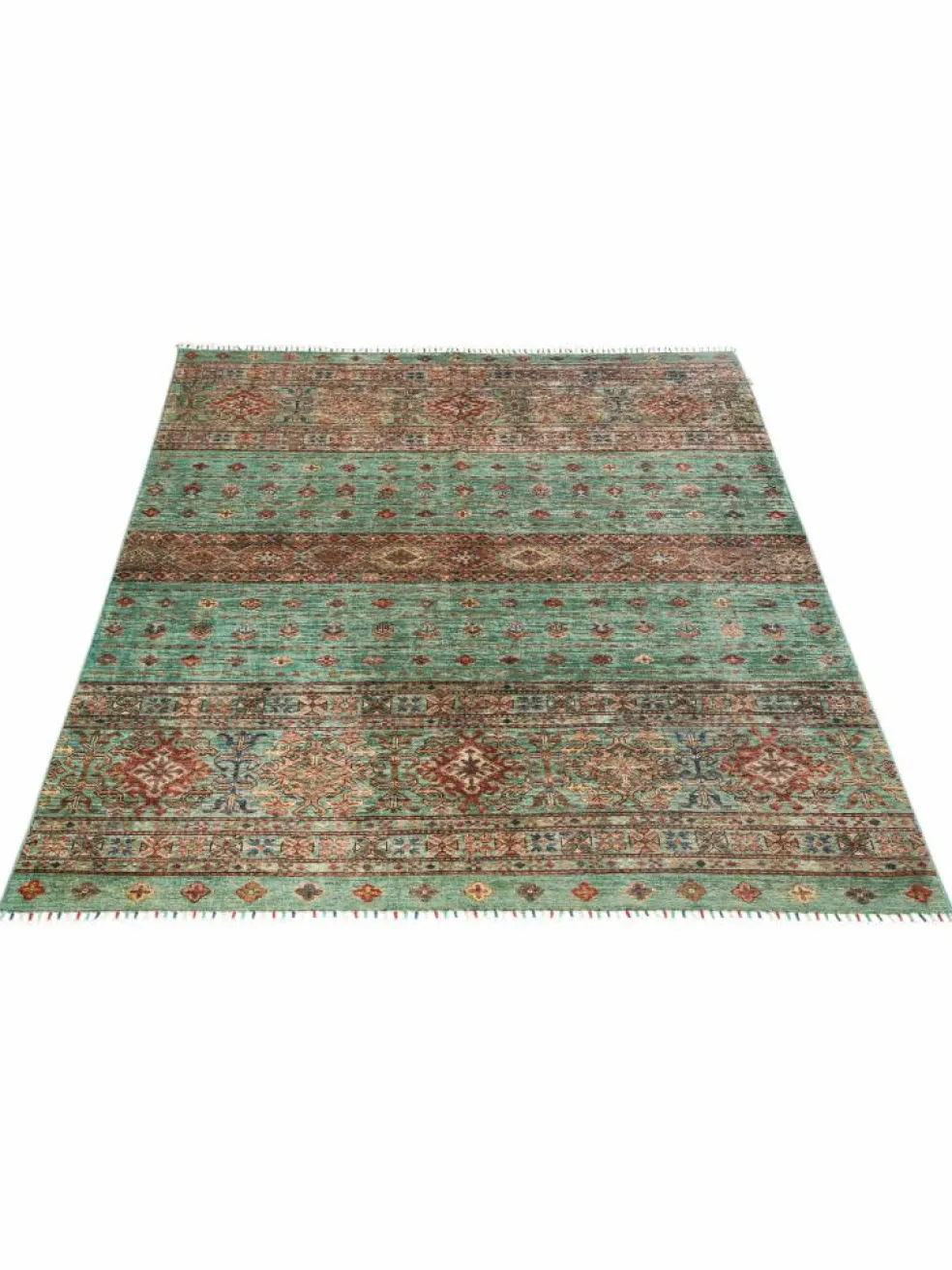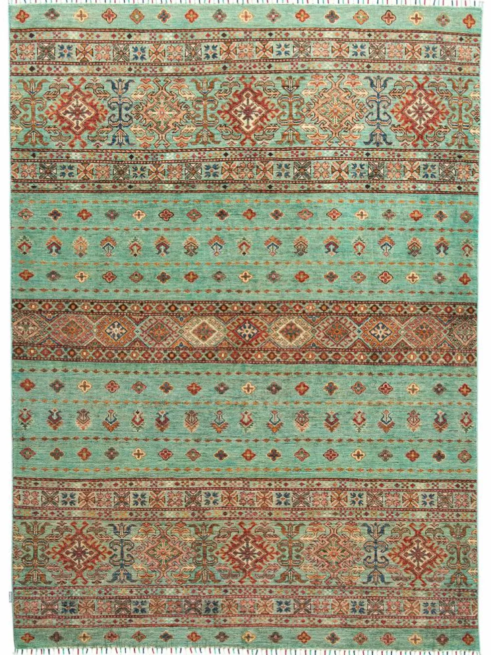 -Muster sind bunte Längsstreifen mit vielen verschiedenen Motiven gefüllt. Durch den flachen und festen Flor ist der Teppich unempfindlich gegenüber den Belastungen des Alltags.- Das Besondere an diesemOrientteppich