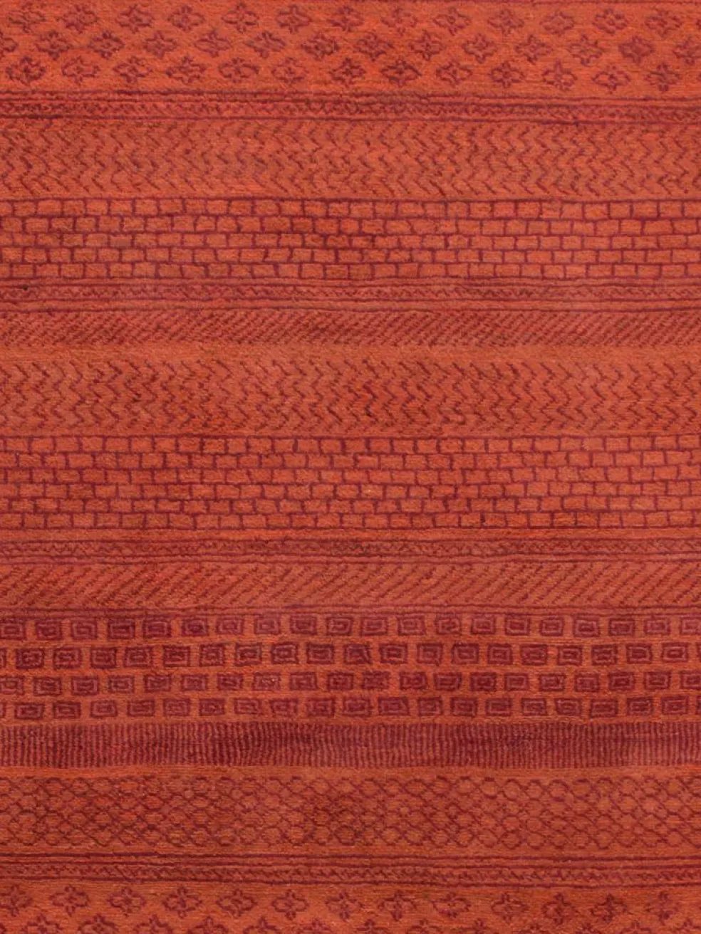 ist eine ungewöhnliche moderne Variation des traditionellen persichen Gabbehs. Er ist kürzer im Flor und feiner geknüpft. Es gibt zahllose Neukreationen in individuellen und einzigartigen Farben und Mustern.| Gesamthöhe: | ca. 10 mm |