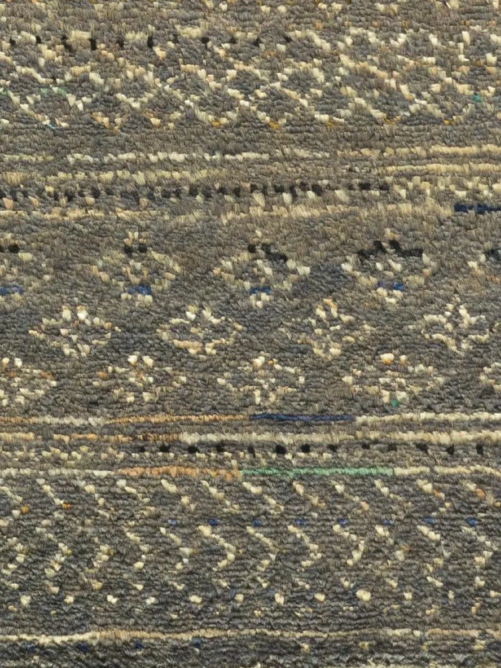 ist eine ungewöhnliche moderne Variation des traditionellen persichen Gabbehs. Er ist kürzer im Flor und feiner geknüpft. Es gibt zahllose Neukreationen in individuellen und einzigartigen Farben und Mustern.| Gesamthöhe: | ca. 8 mm |