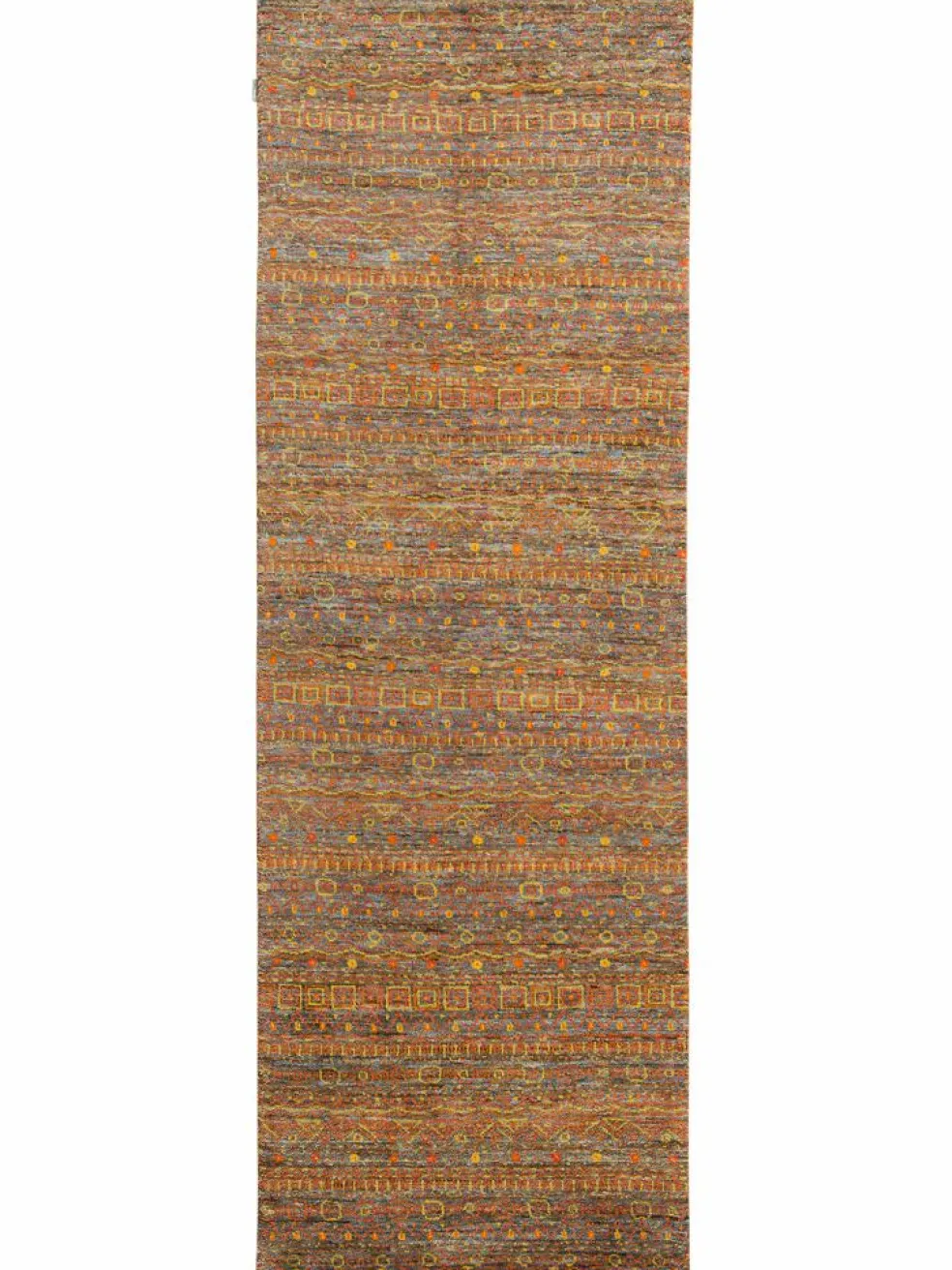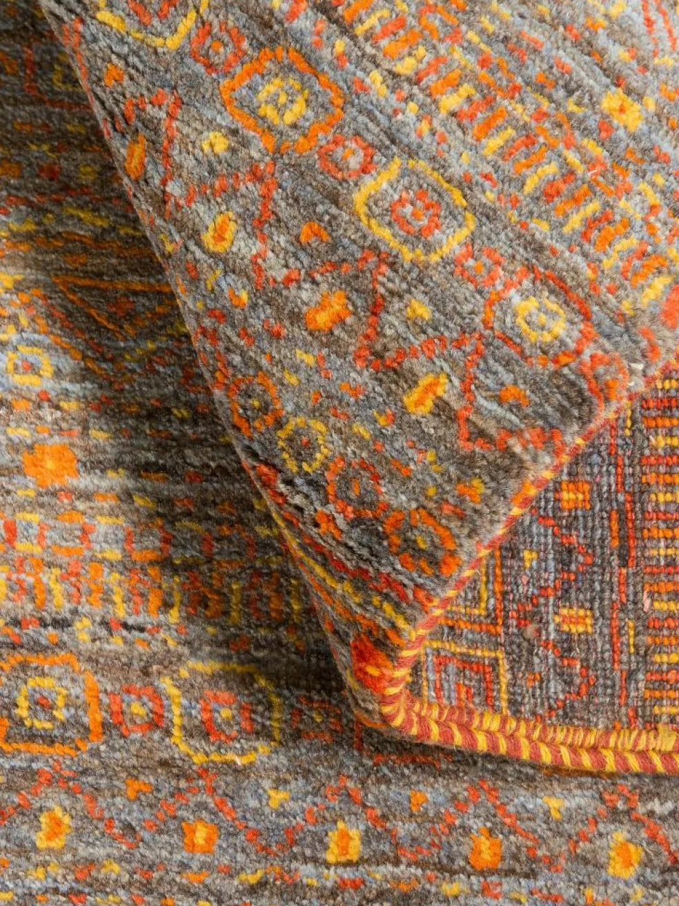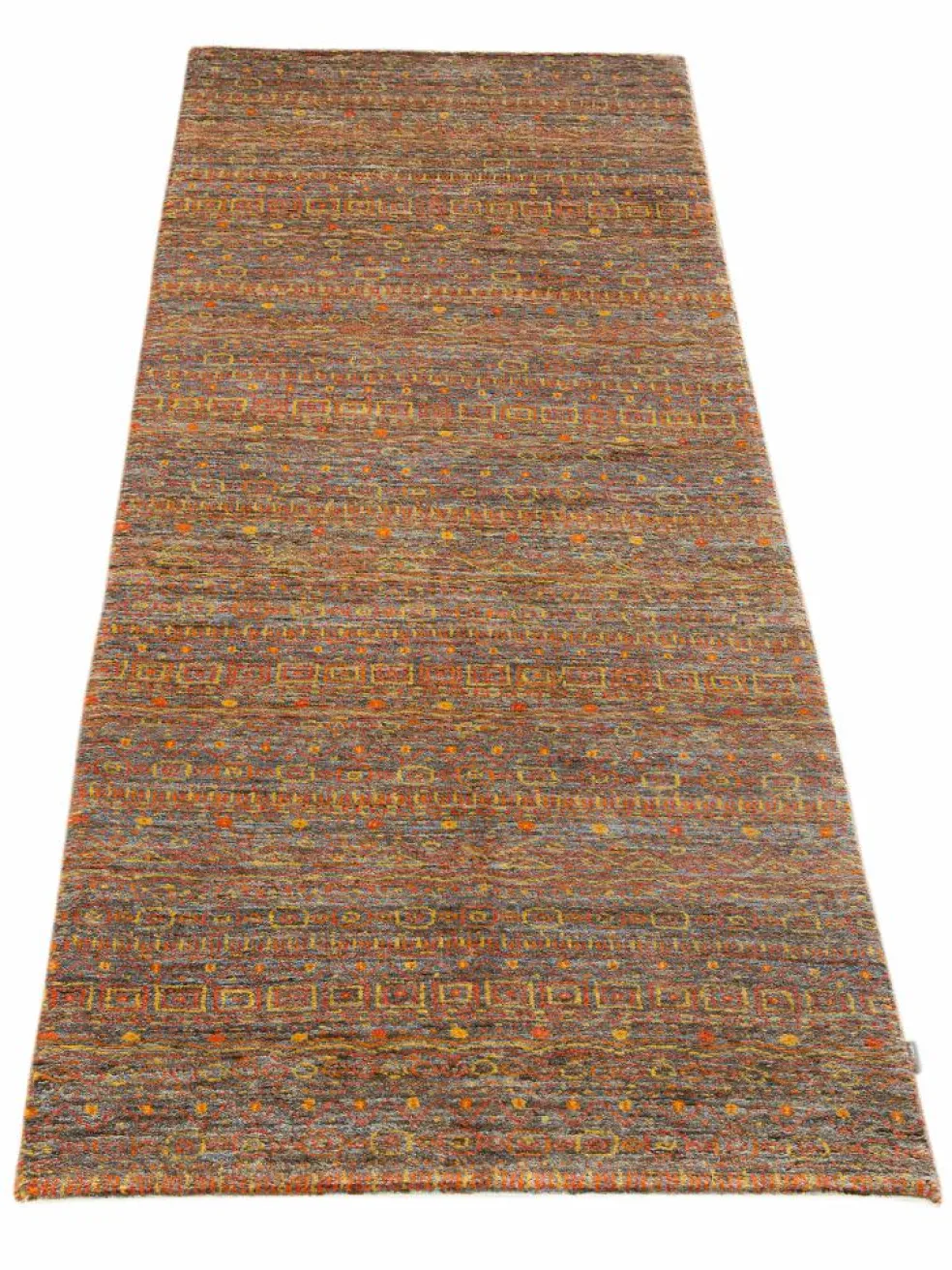 ist eine ungewöhnliche moderne Variation des traditionellen persichen Gabbehs. Er ist kürzer im Flor und feiner geknüpft. Es gibt zahllose Neukreationen in individuellen und einzigartigen Farben und Mustern. – Fein geknüpft inDouble-Knot