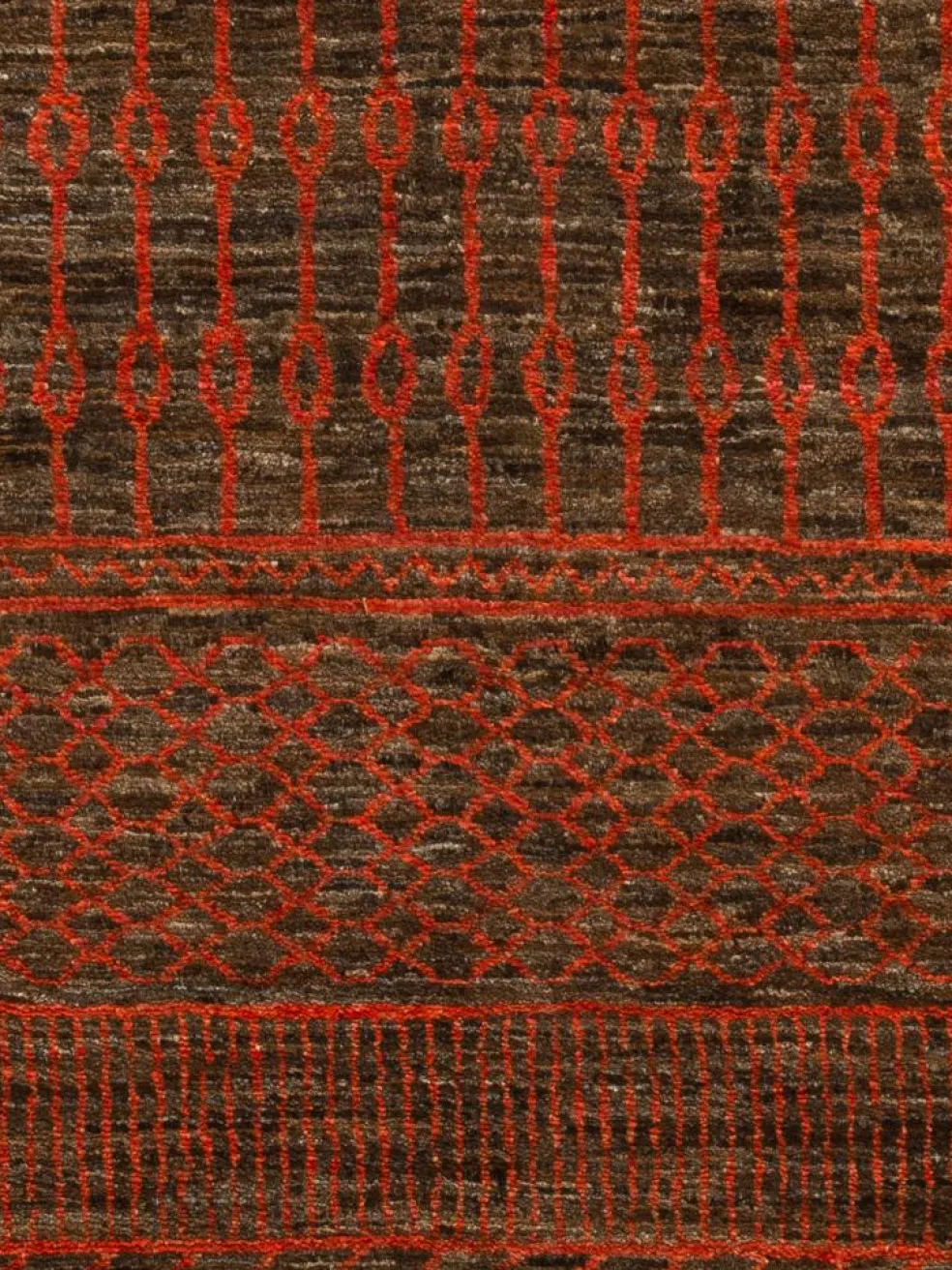 ist eine ungewöhnliche moderne Variation des traditionellen persichen Gabbehs. Er ist kürzer im Flor und feiner geknüpft. Es gibt zahllose Neukreationen in individuellen und einzigartigen Farben und Mustern.| Gesamthöhe: | ca. 10 mm |
