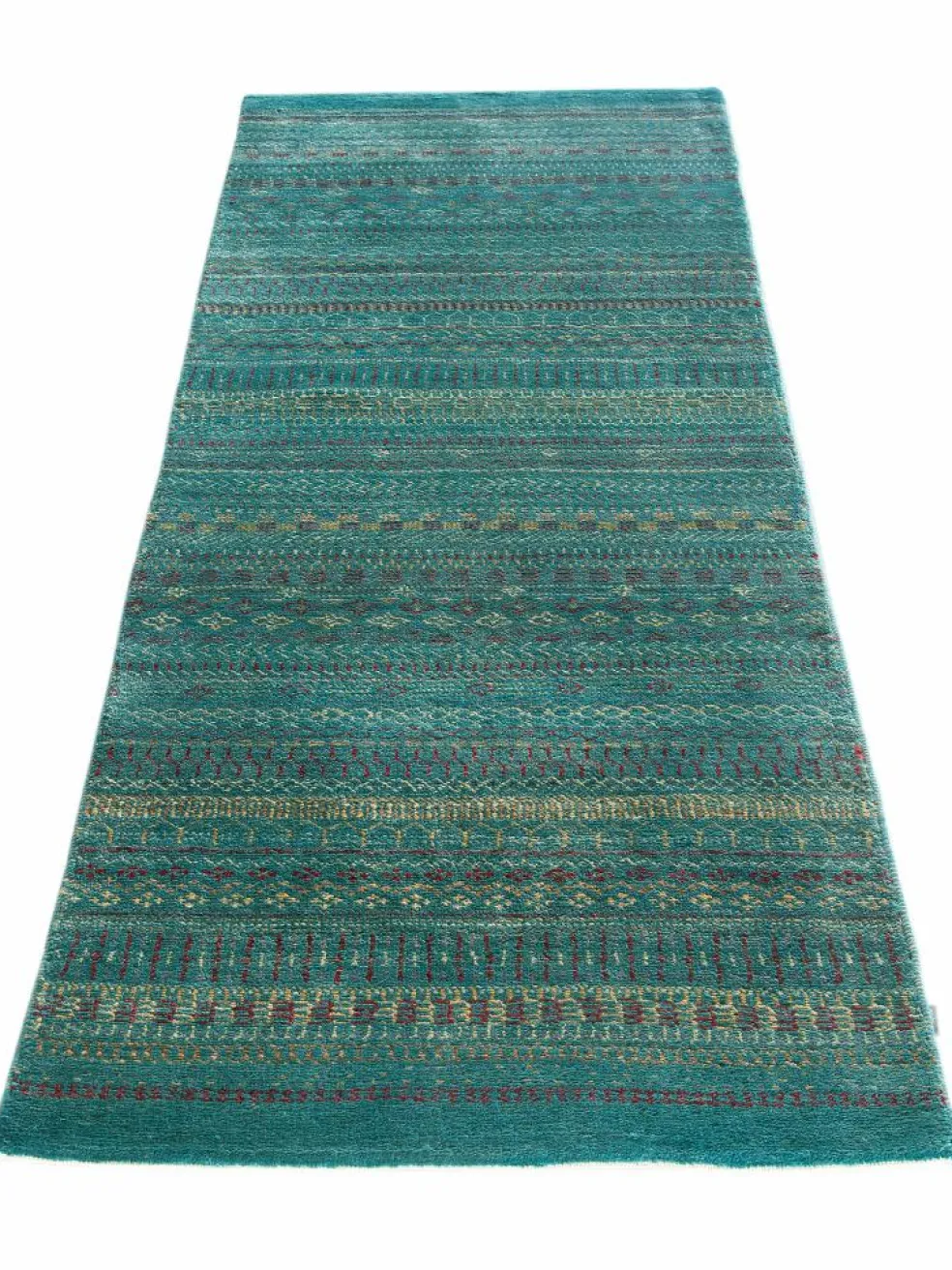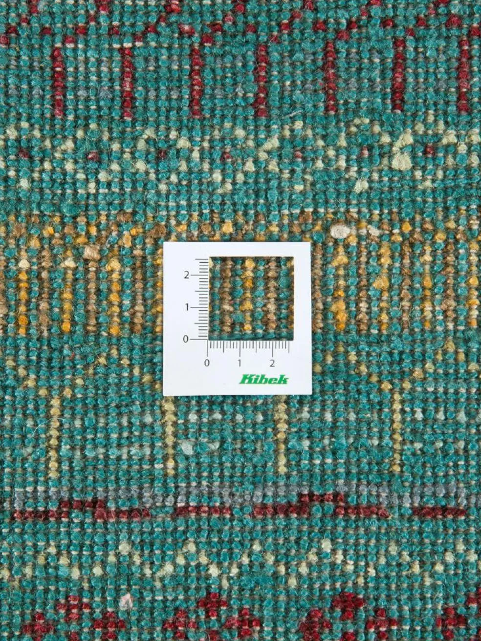 ist eine ungewöhnliche moderne Variation des traditionellen persichen Gabbehs. Er ist kürzer im Flor und feiner geknüpft. Es gibt zahllose Neukreationen in individuellen und einzigartigen Farben und Mustern.| Gesamthöhe: | ca. 10 mm |