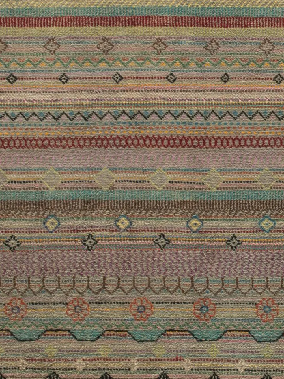 ist eine ungewöhnliche moderne Variation des traditionellen persichen Gabbehs. Er ist kürzer im Flor und feiner geknüpft. Es gibt zahllose Neukreationen in individuellen und einzigartigen Farben und Mustern.| Gesamthöhe: | ca. 10 mm |