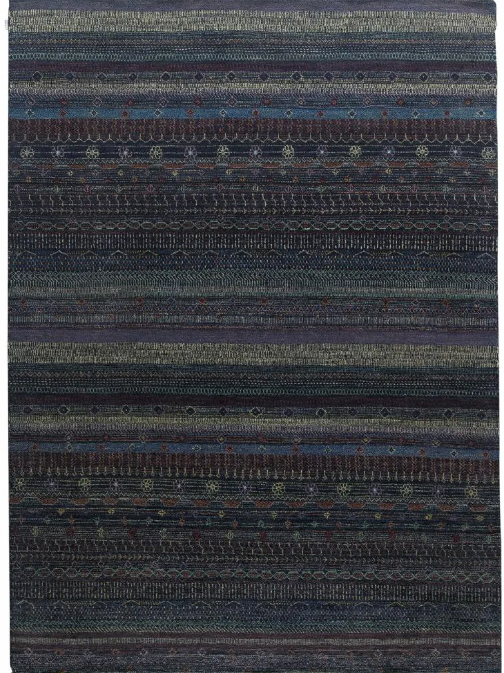 ist eine ungewöhnliche moderne Variation des traditionellen persichen Gabbehs. Er ist kürzer im Flor und feiner geknüpft. Es gibt zahllose Neukreationen in individuellen und einzigartigen Farben und Mustern.| Gesamthöhe: | ca. 9 mm |