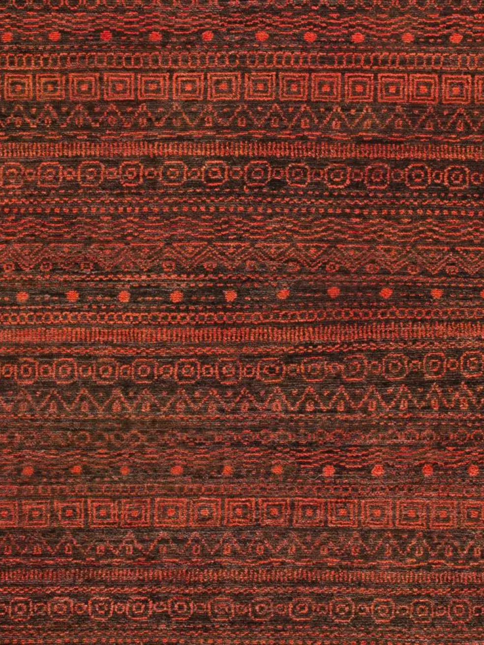 ist eine ungewöhnliche moderne Variation des traditionellen persichen Gabbehs. Er ist kürzer im Flor und feiner geknüpft. Es gibt zahllose Neukreationen in individuellen und einzigartigen Farben und Mustern.| Gesamthöhe: | ca. 9 mm |