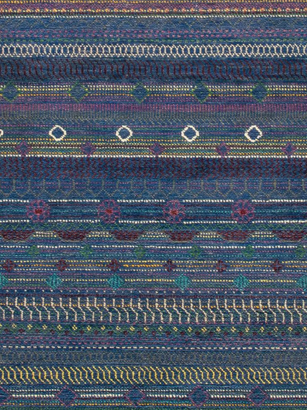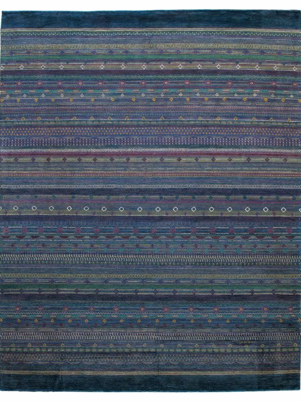 ist eine ungewöhnliche moderne Variation des traditionellen persichen Gabbehs. Er ist kürzer im Flor und feiner geknüpft. Es gibt zahllose Neukreationen in individuellen und einzigartigen Farben und Mustern.| Gesamthöhe: | ca. 10 mm |