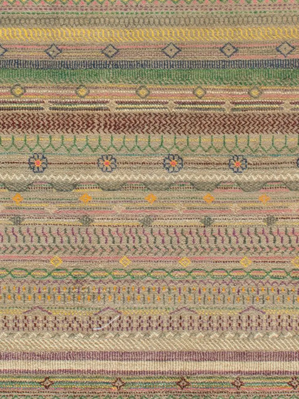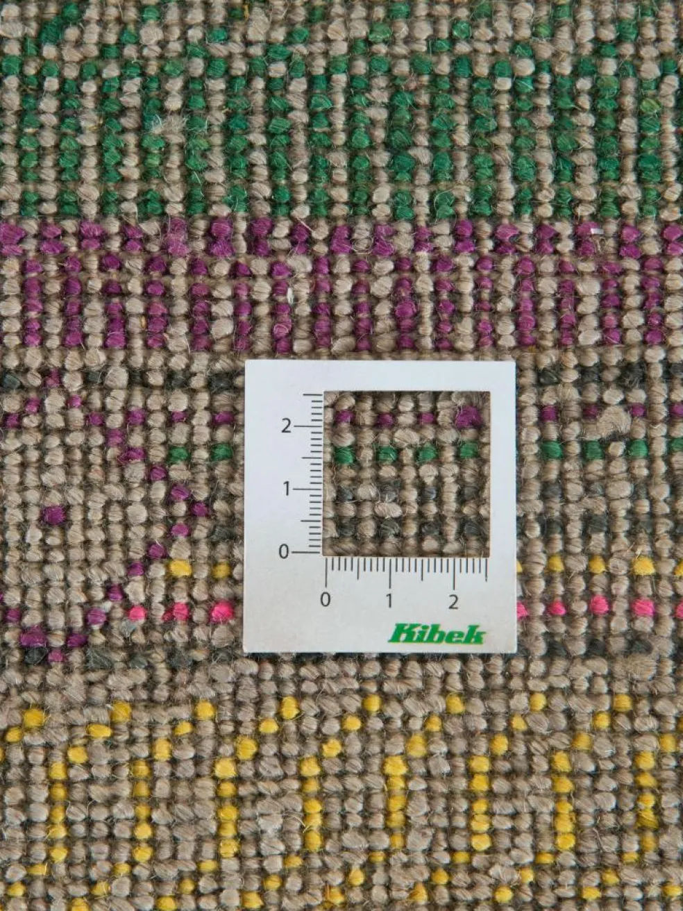 ist eine ungewöhnliche moderne Variation des traditionellen persichen Gabbehs. Er ist kürzer im Flor und feiner geknüpft. Es gibt zahllose Neukreationen in individuellen und einzigartigen Farben und Mustern.| Gesamthöhe: | ca. 10 mm |