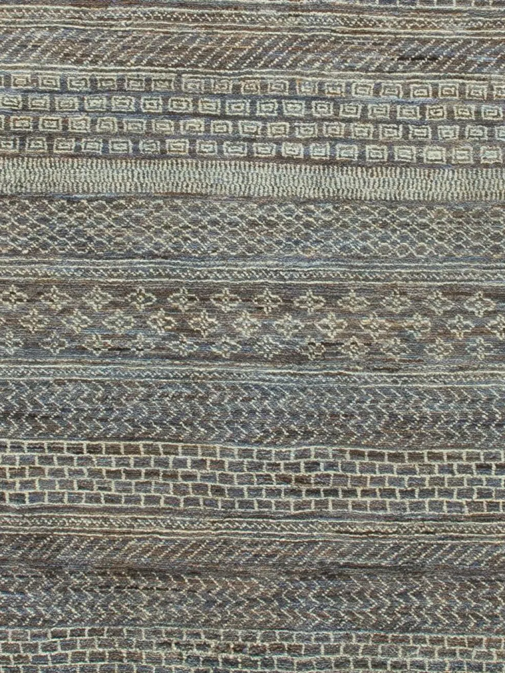 ist eine ungewöhnliche moderne Variation des traditionellen persichen Gabbehs. Er ist kürzer im Flor und feiner geknüpft. Es gibt zahllose Neukreationen in individuellen und einzigartigen Farben und Mustern.| Gesamthöhe: | ca. 10 mm |