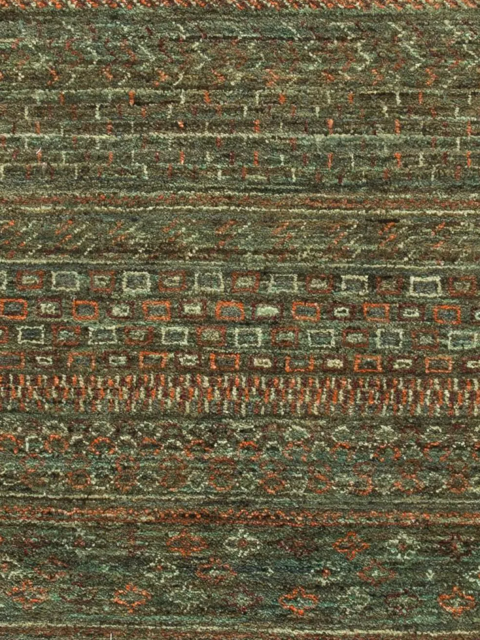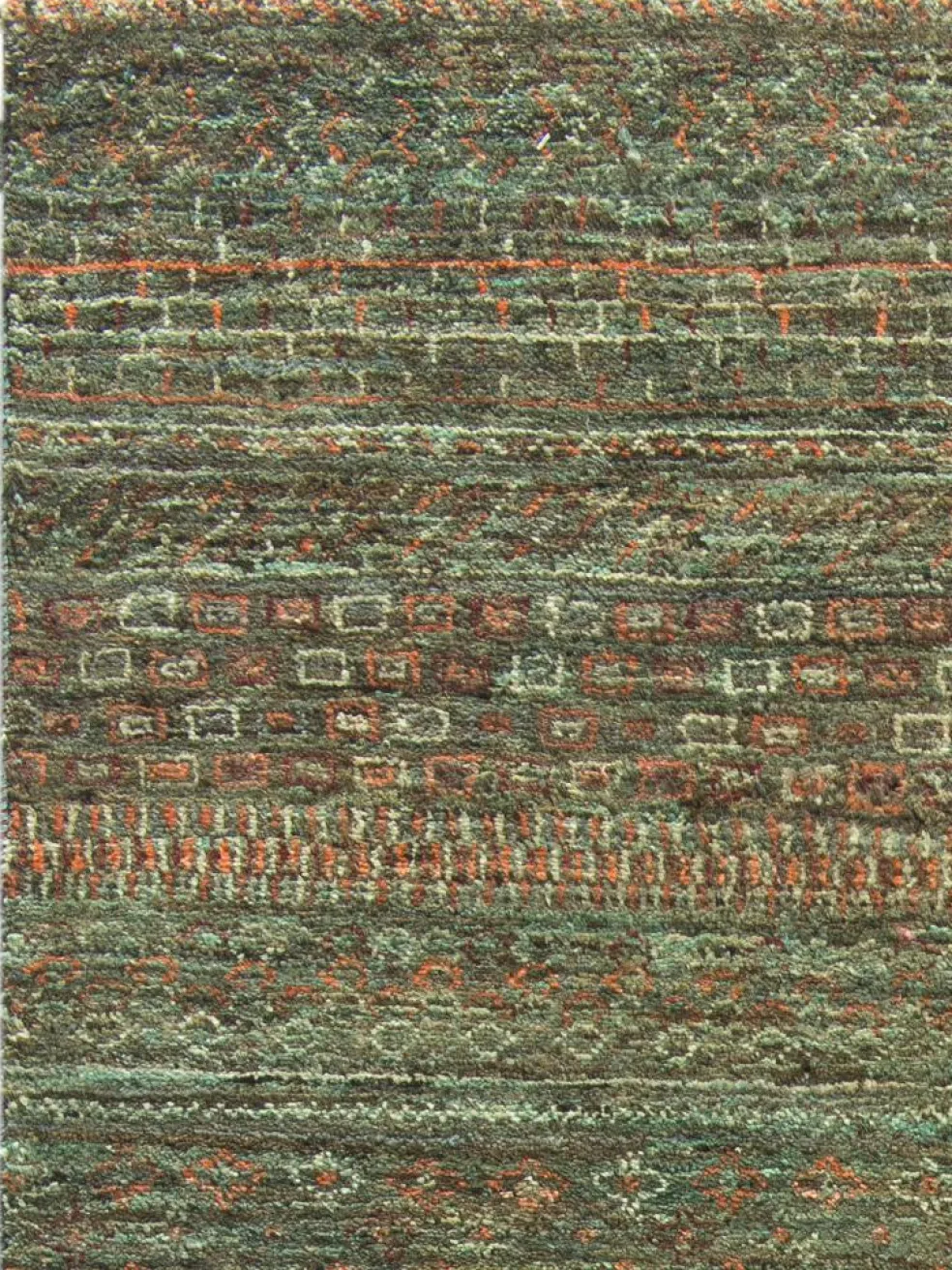 ist eine ungewöhnliche moderne Variation des traditionellen persichen Gabbehs. Er ist kürzer im Flor und feiner geknüpft. Es gibt zahllose Neukreationen in individuellen und einzigartigen Farben und Mustern.| Gesamthöhe: | ca. 7 mm |