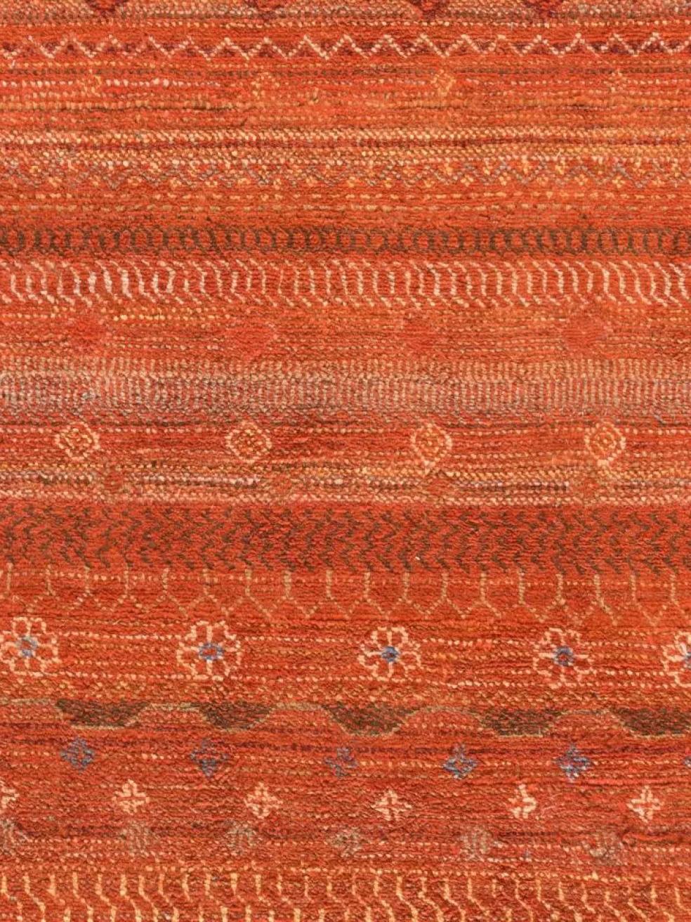 ist eine ungewöhnliche moderne Variation des traditionellen persichen Gabbehs. Er ist kürzer im Flor und feiner geknüpft. Es gibt zahllose Neukreationen in individuellen und einzigartigen Farben und Mustern.| Gesamthöhe: | ca. 7 mm |