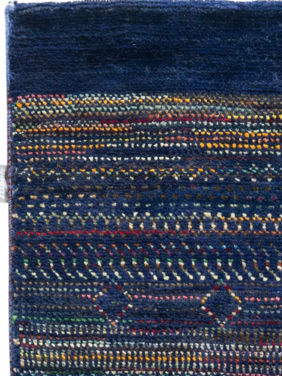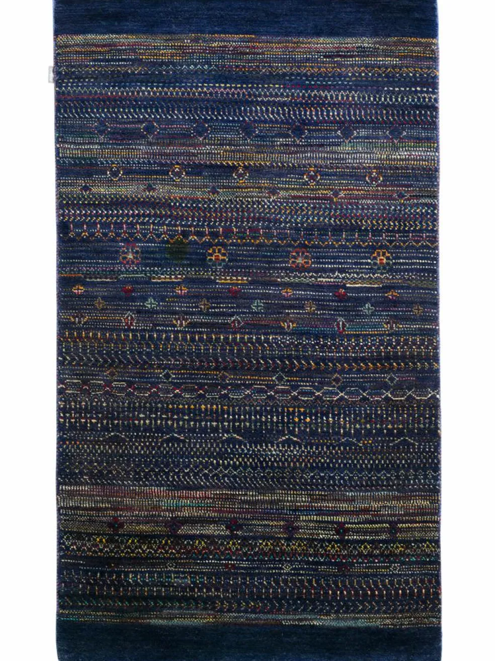 ist eine ungewöhnliche moderne Variation des traditionellen persichen Gabbehs. Er ist kürzer im Flor und feiner geknüpft. Es gibt zahllose Neukreationen in individuellen und einzigartigen Farben und Mustern. – Fein geknüpft inDouble-Knot