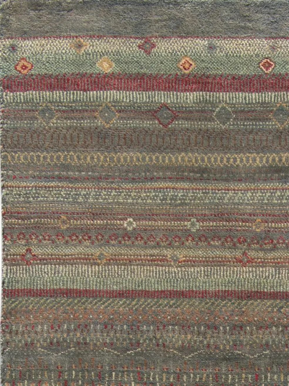 ist eine ungewöhnliche moderne Variation des traditionellen persichen Gabbehs. Er ist kürzer im Flor und feiner geknüpft. Es gibt zahllose Neukreationen in individuellen und einzigartigen Farben und Mustern.| Gesamthöhe: | ca. 8 mm |