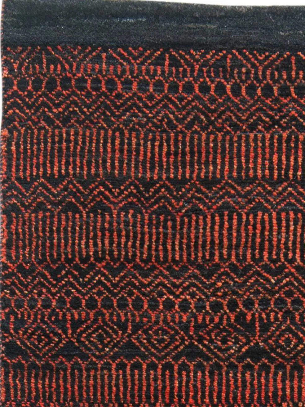 ist eine ungewöhnliche moderne Variation des traditionellen persichen Gabbehs. Er ist kürzer im Flor und feiner geknüpft. Es gibt zahllose Neukreationen in individuellen und einzigartigen Farben und Mustern.| Gesamthöhe: | ca. 10 mm |